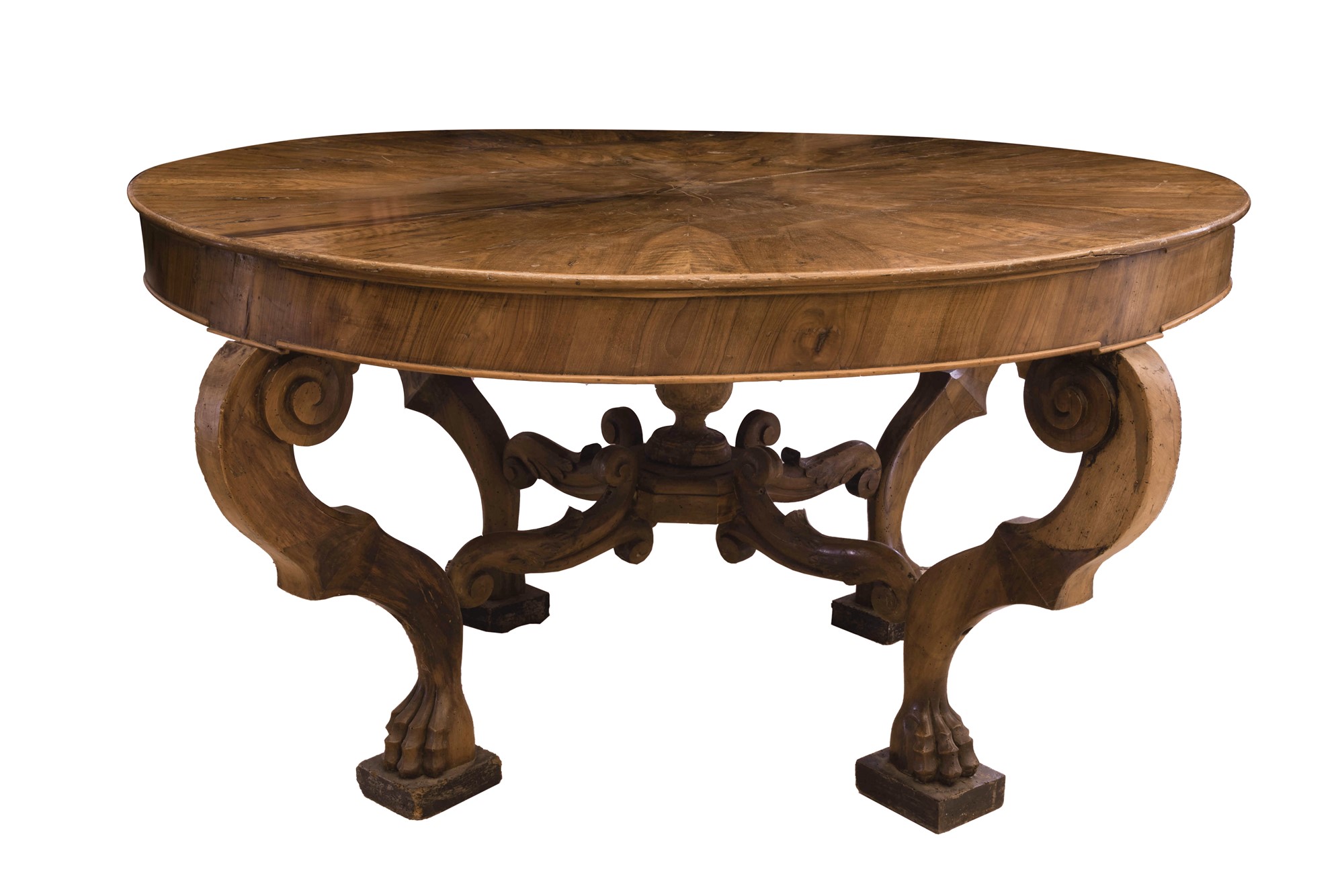 Tavolo tondo Napoli in noce e radica di noce XVIII secolo