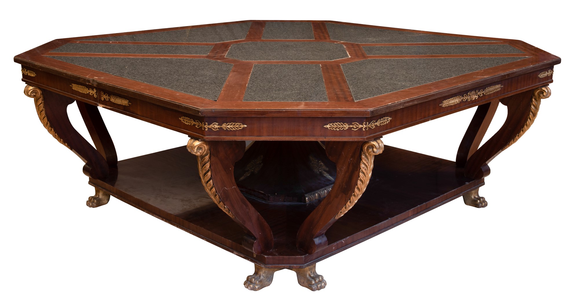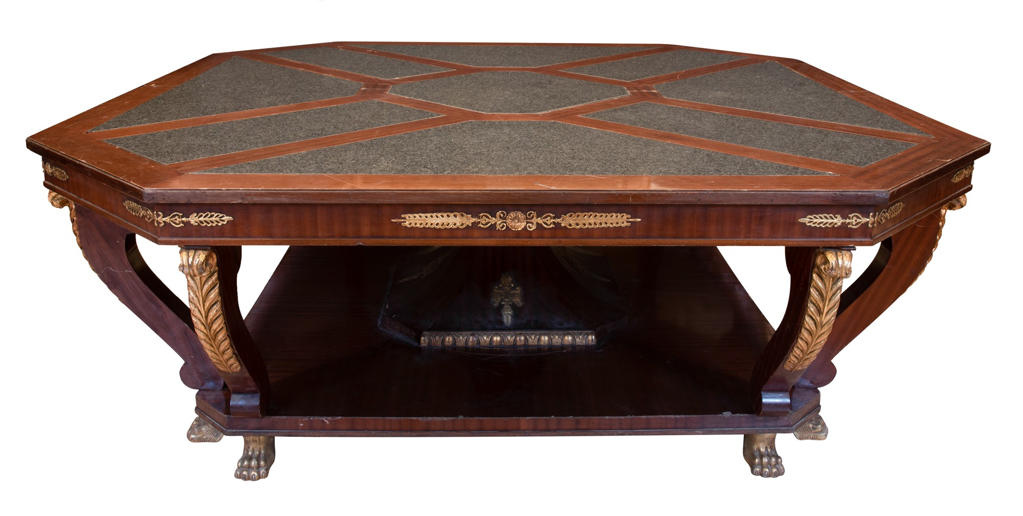Tavolo ottagonale in mogano e granito stile impero cm 89x245