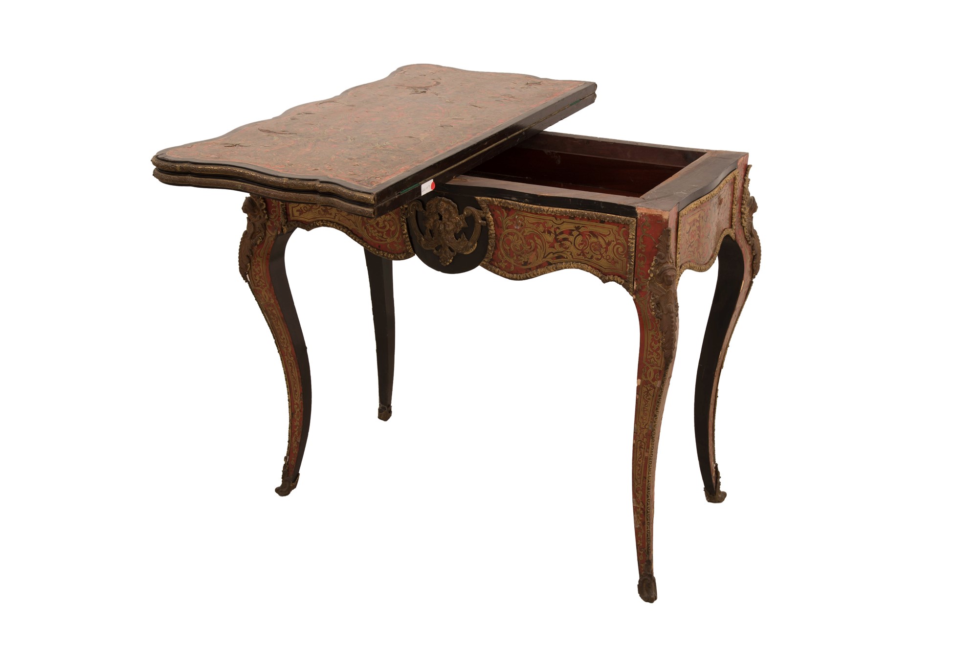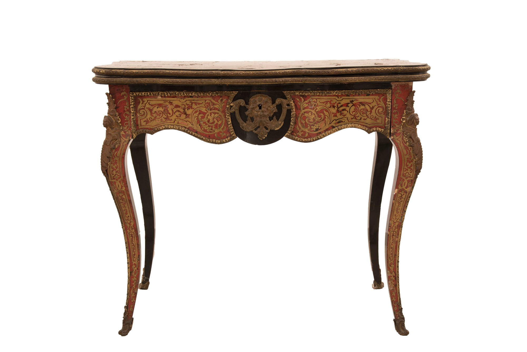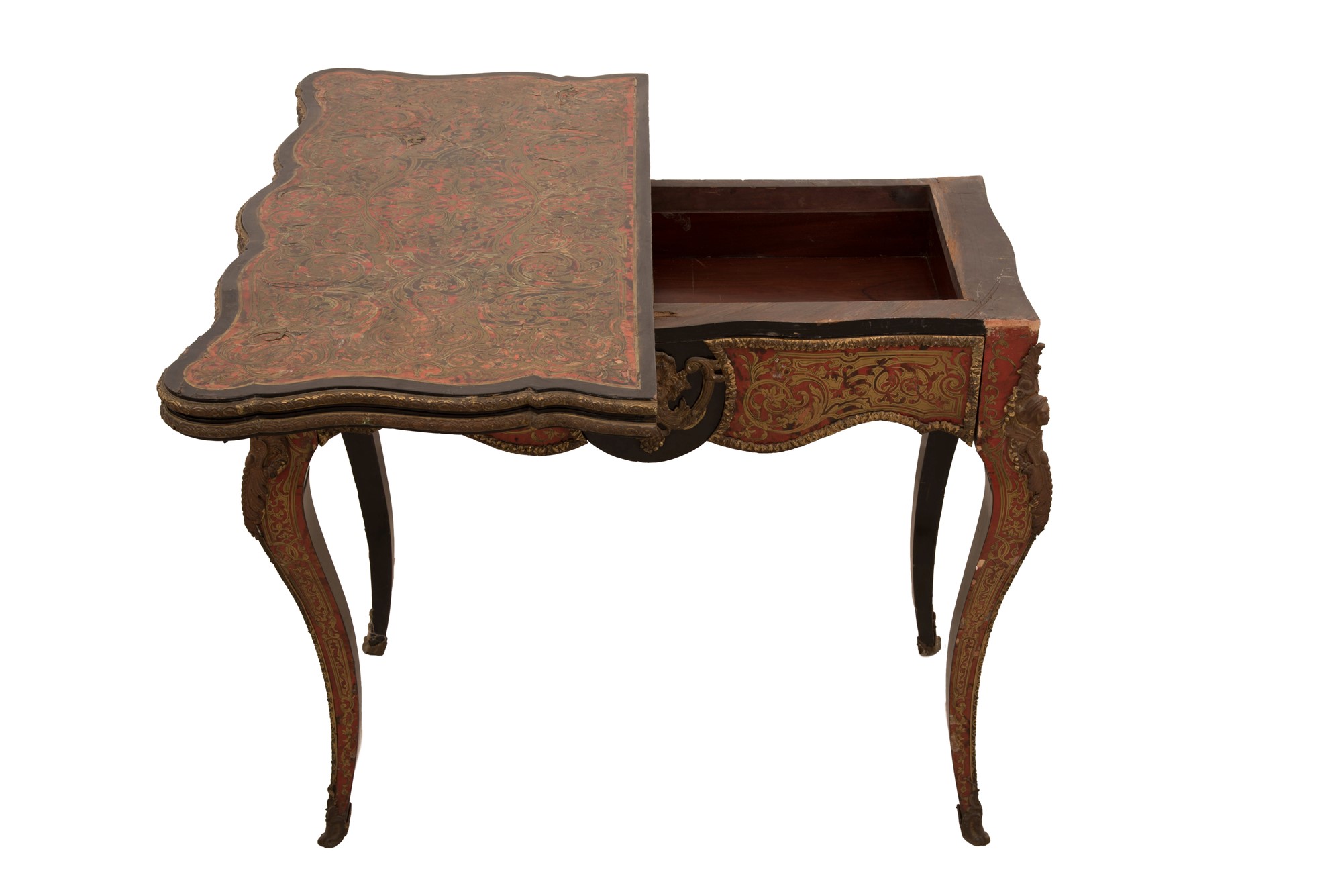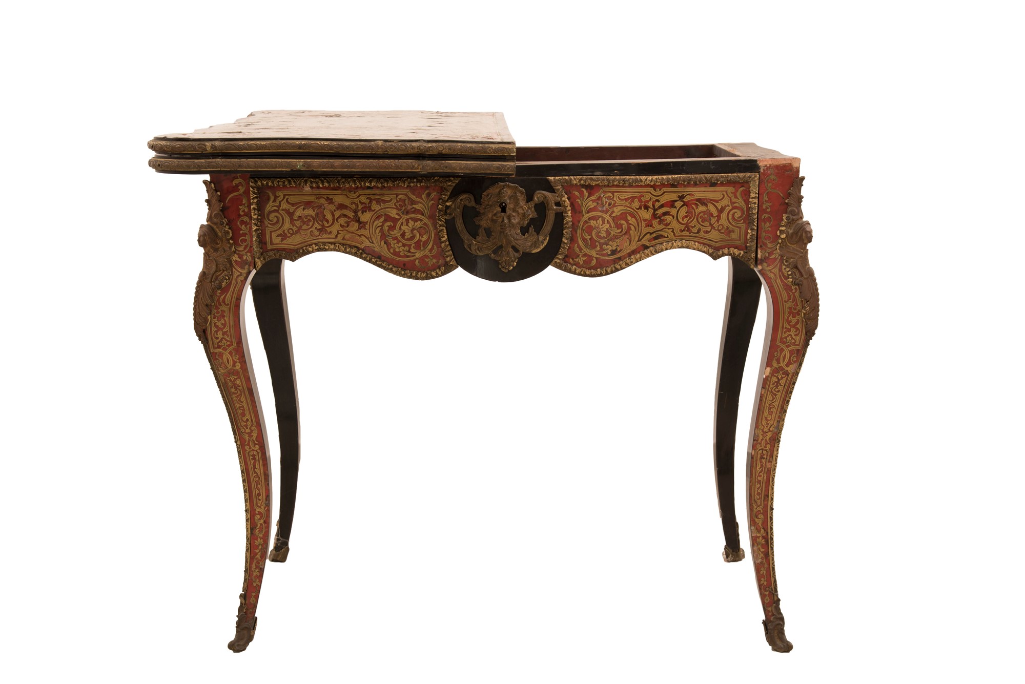 Tavolino da gioco a libretto Boulle XIX secolo cm 74x90x44 e cm 74x90x88 (aperto)
