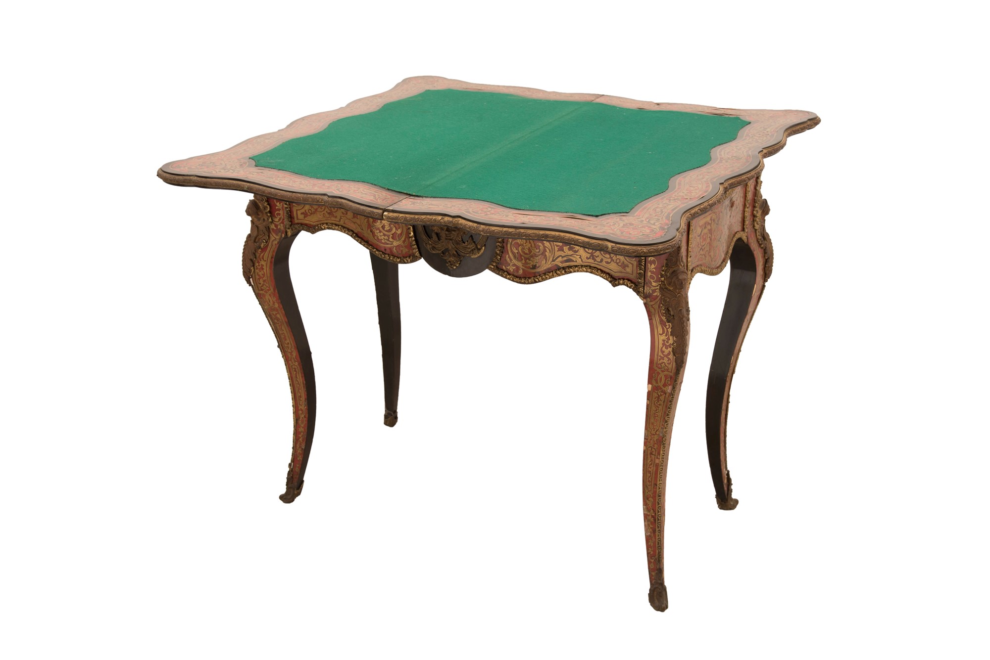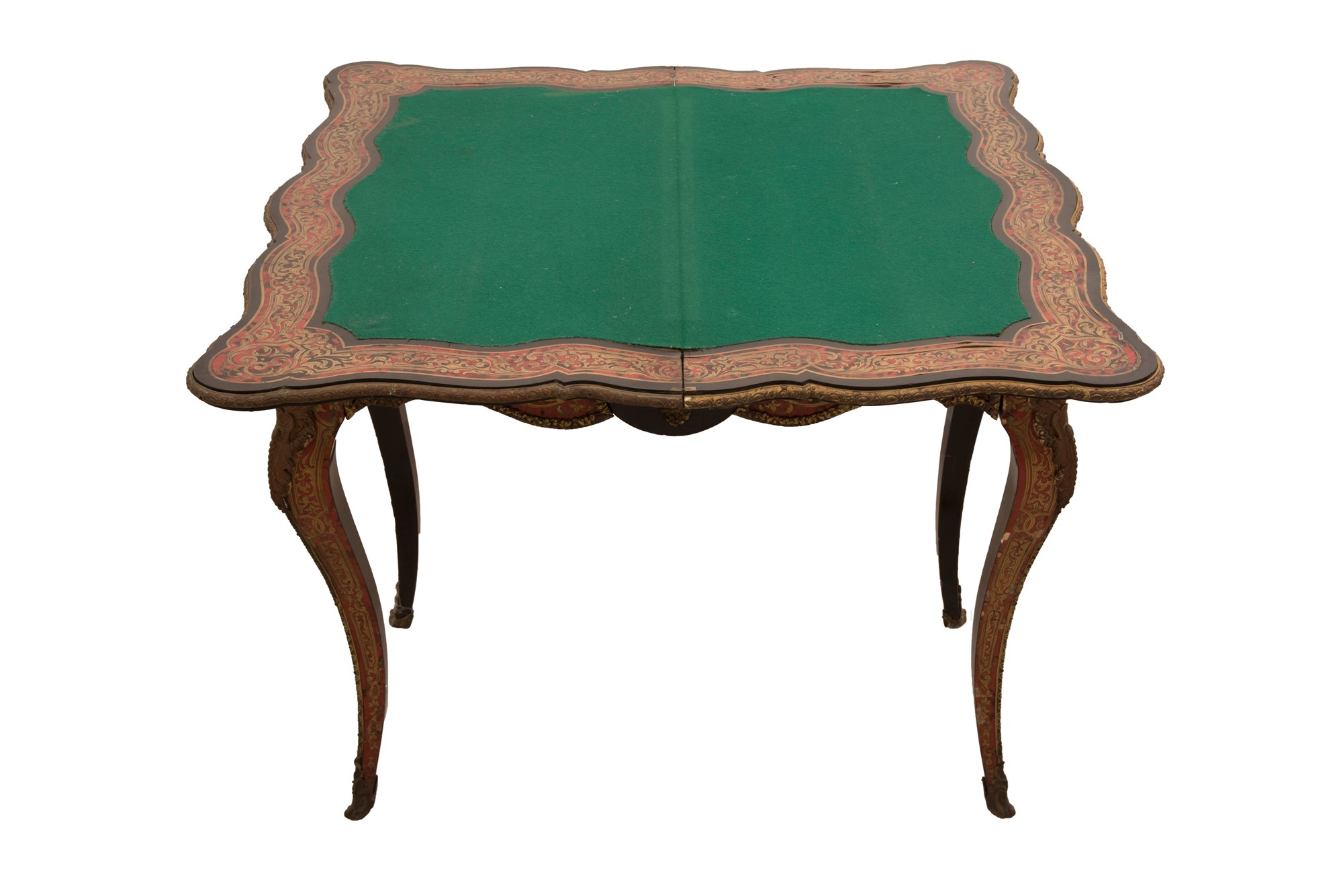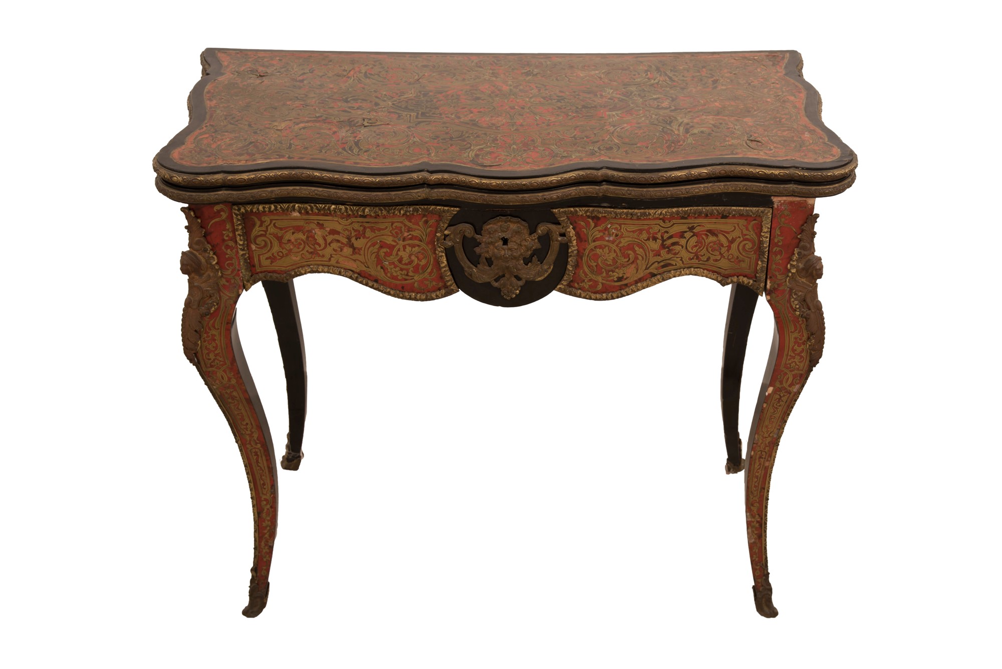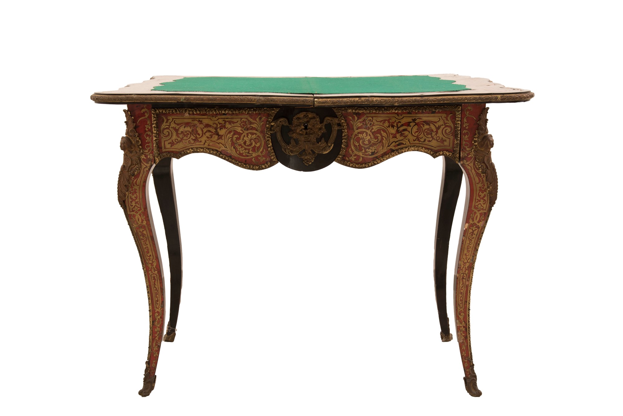 Tavolino da gioco a libretto Boulle XIX secolo cm 74x90x44 e cm 74x90x88 (aperto)