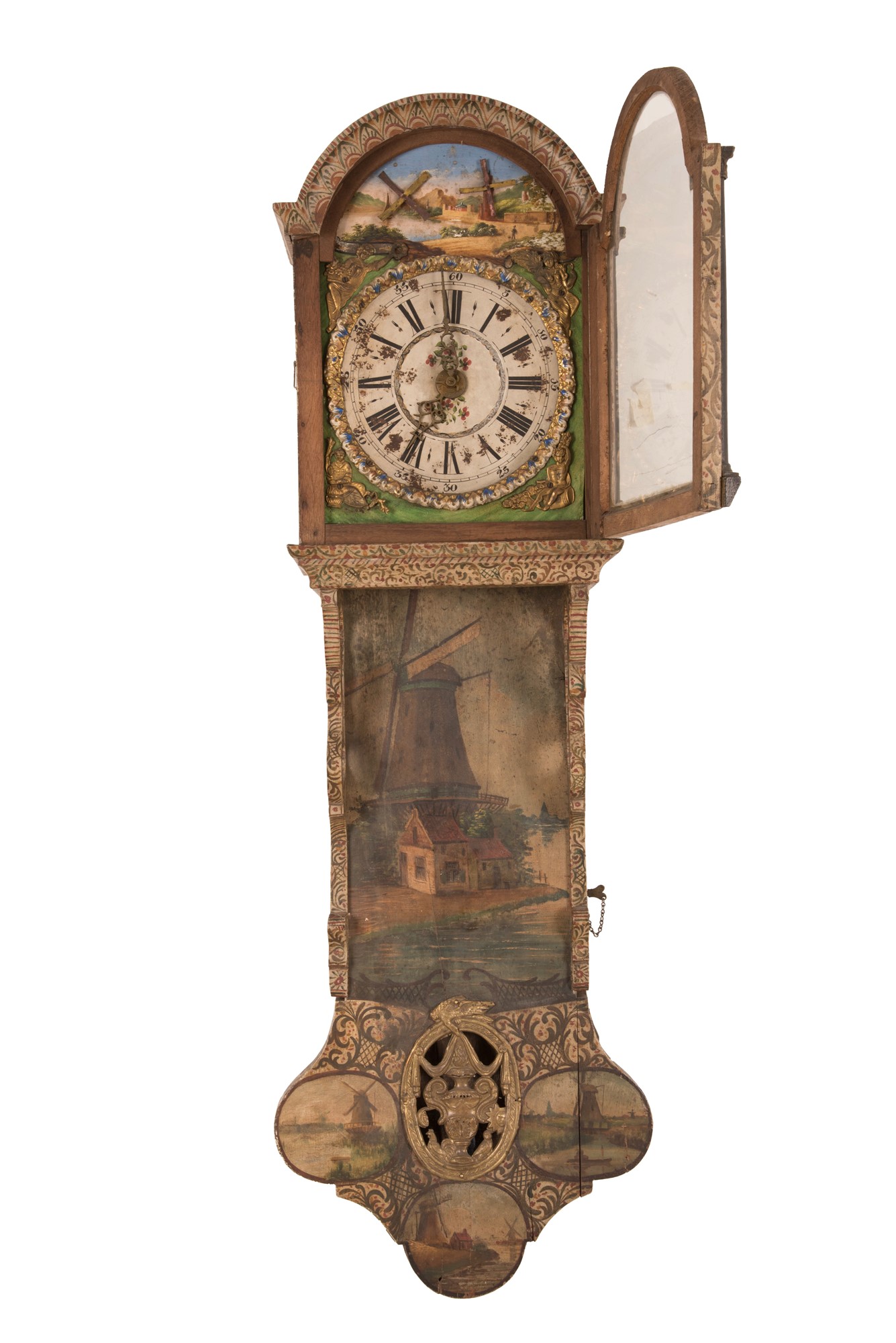 Orologio olandese da muro in legno dipinto a motivi vegetali XIX secolo