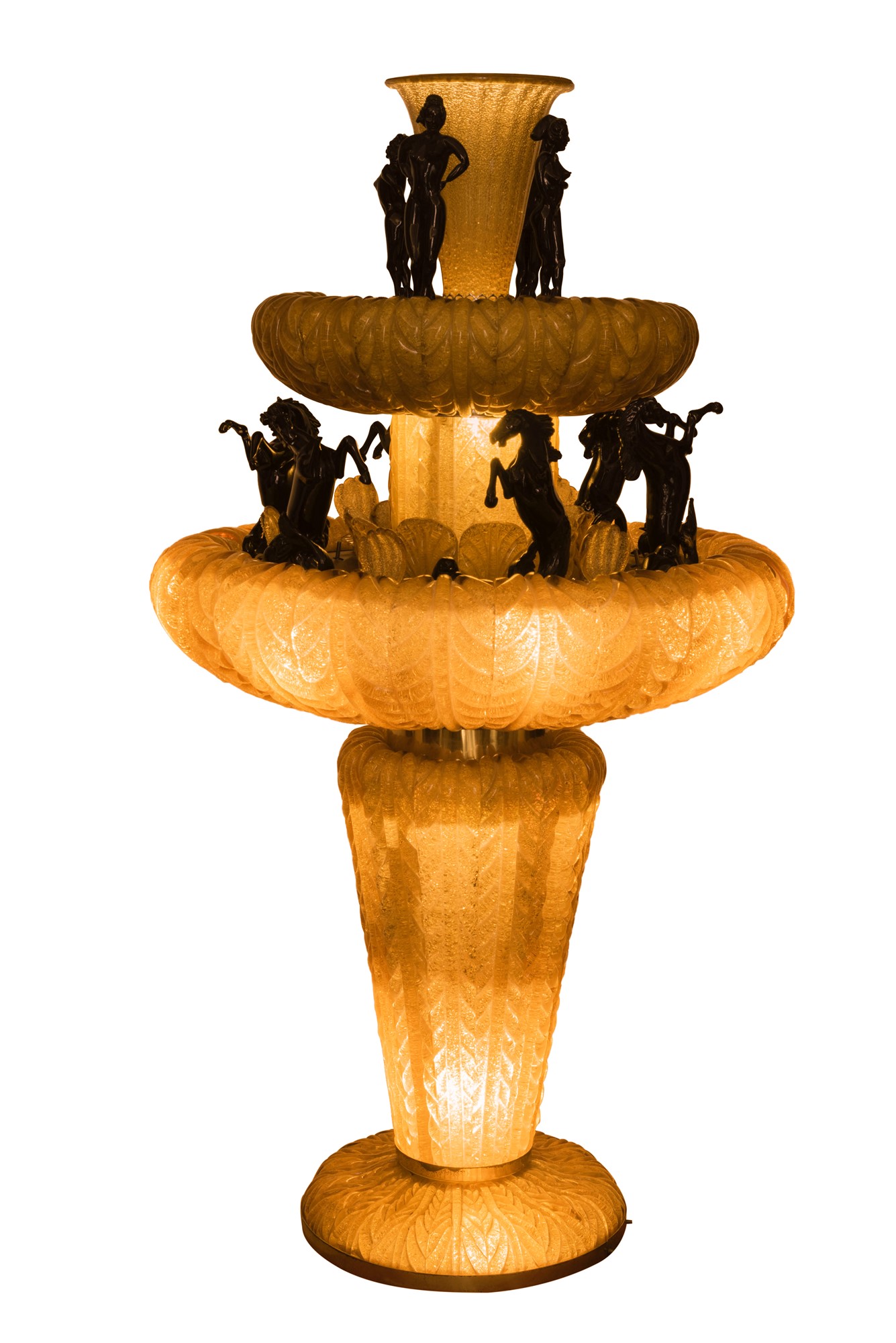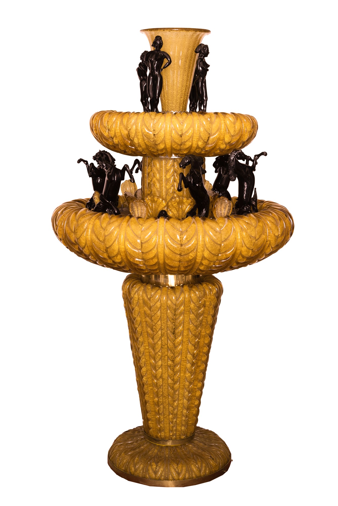 Grande fontana luminosa in vetro giallo e nero. Maestri vetrai muranesi del XX secolo.