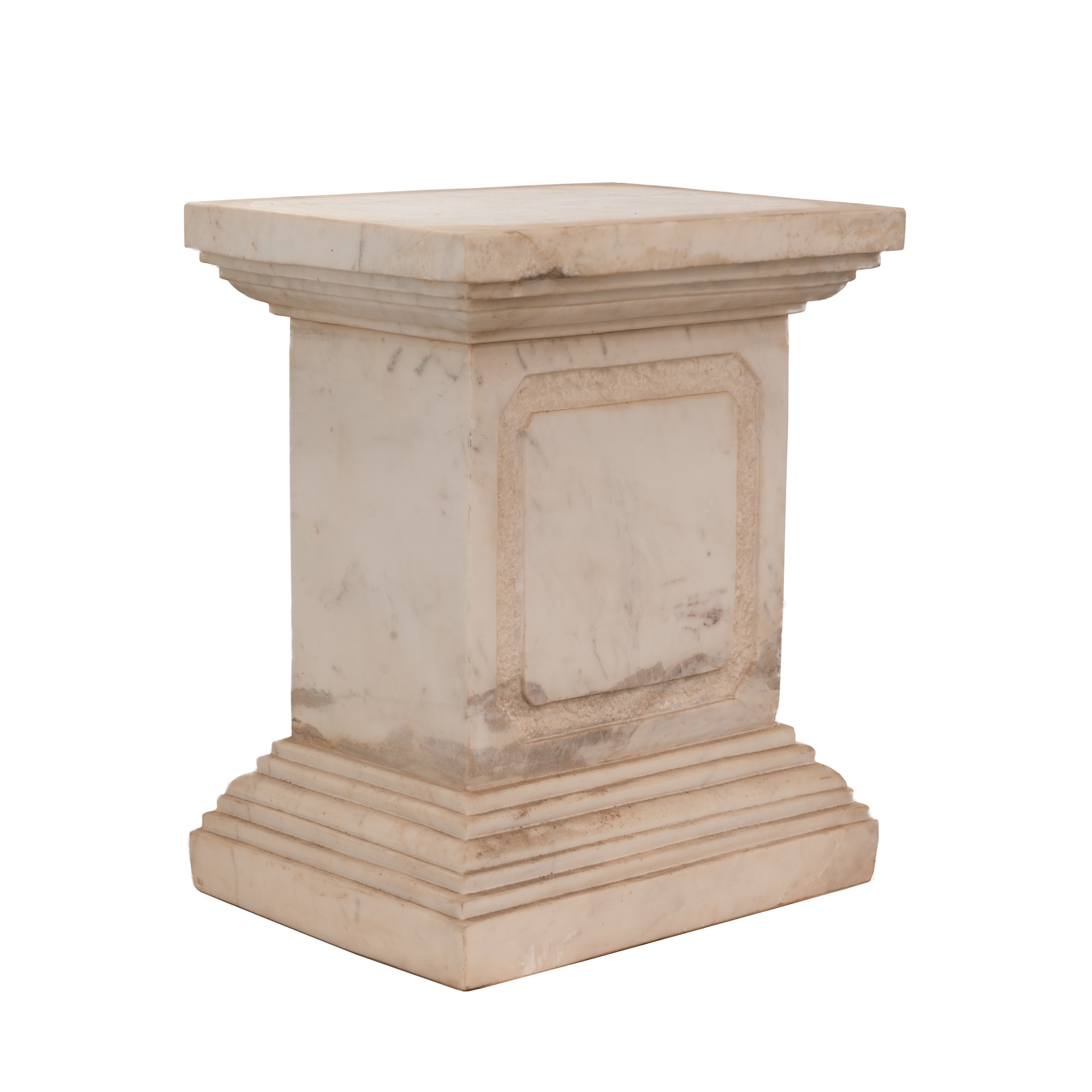 La statua è su una base sfaccettata poggiata su un piedistallo a base quadrangolare terminante a gradoni.