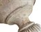 diametro cm 100; altezza base cm 23 ; altezza cm 70 Acquasantiera poggiata su un fusto a balaustro centrale ornato alla sommità da un decoro di foglie aperte rivolte verso il basso e da un doppio motivo circolare alla opposta estremità, terminante su una base a sezione quadrata