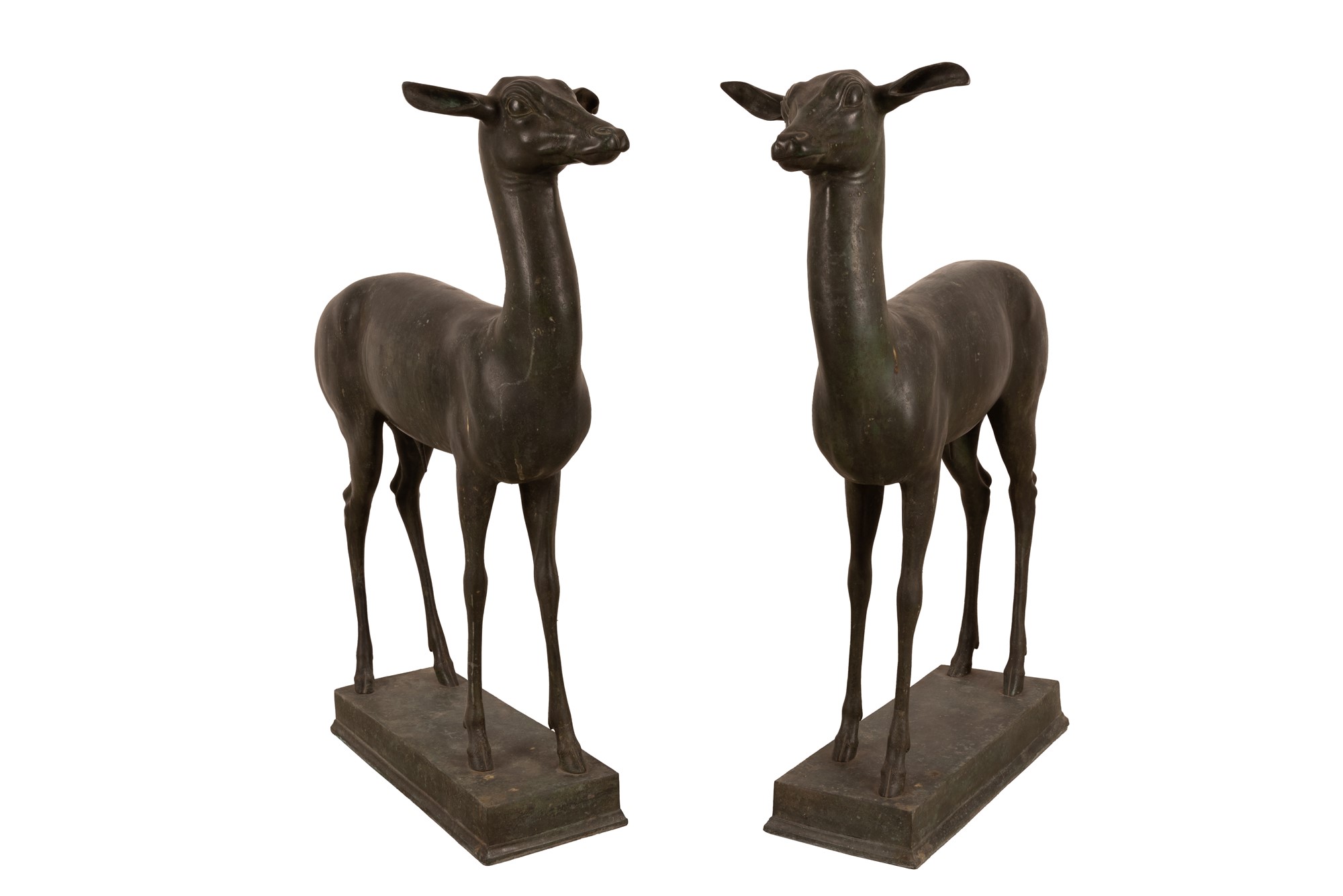 Coppia di sculture in bronzo brunito "Cerbiatti" cm 96x60x20