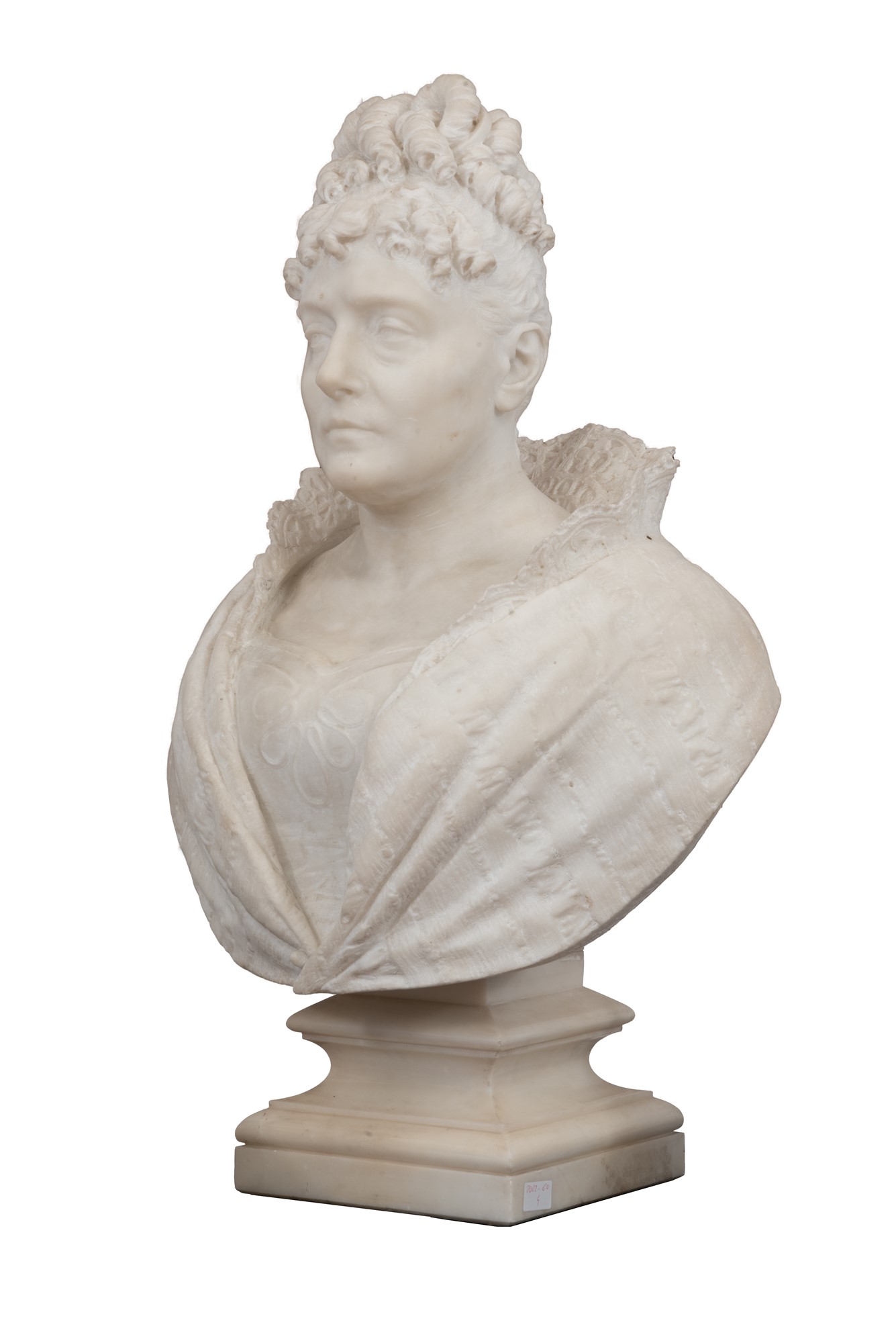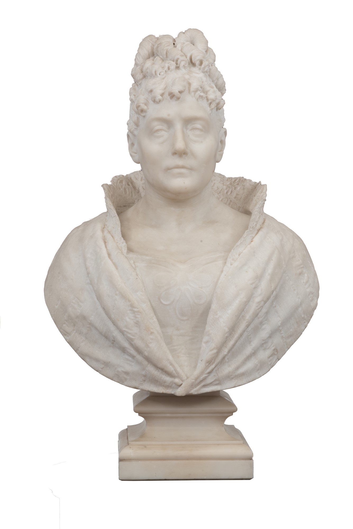 Busto in marmo scultoreo affigurante Maria Letizia Ramolino, madre dell'Imperatore Napoleone Bonaparte, in età matura. XIX secolo