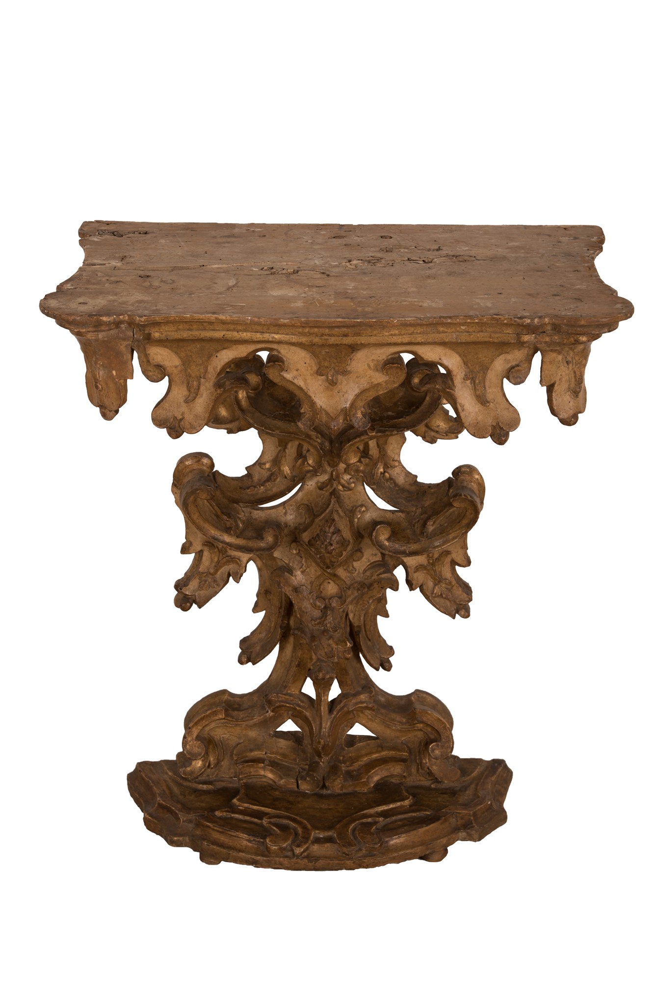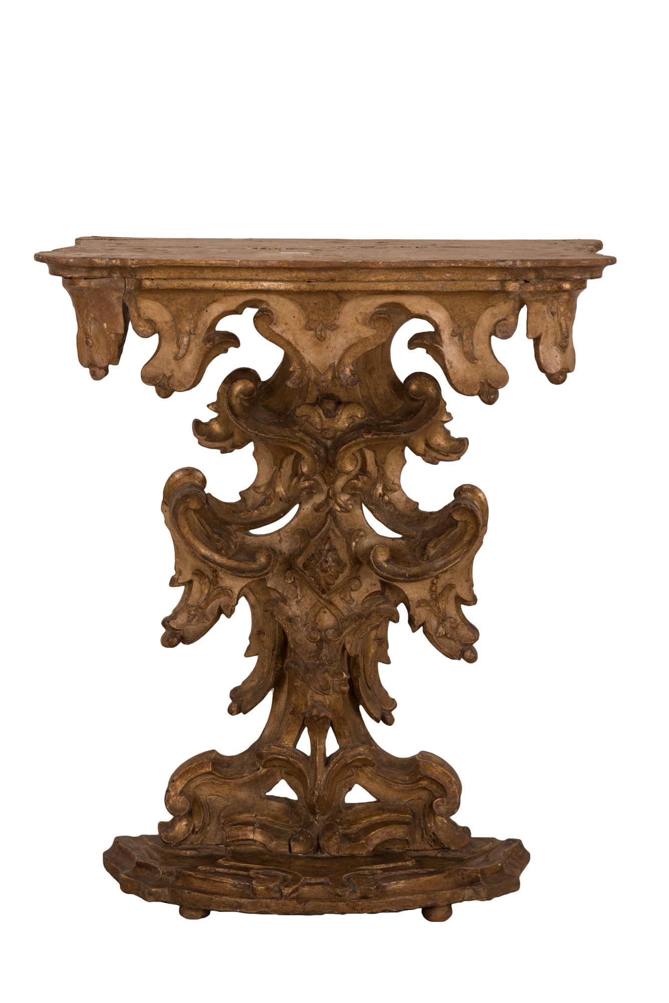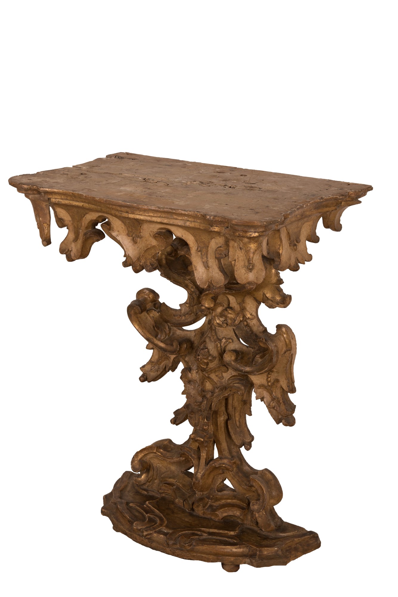 Piccola consolle in legno laccato e dorato Roma seconda meta XVII secolo