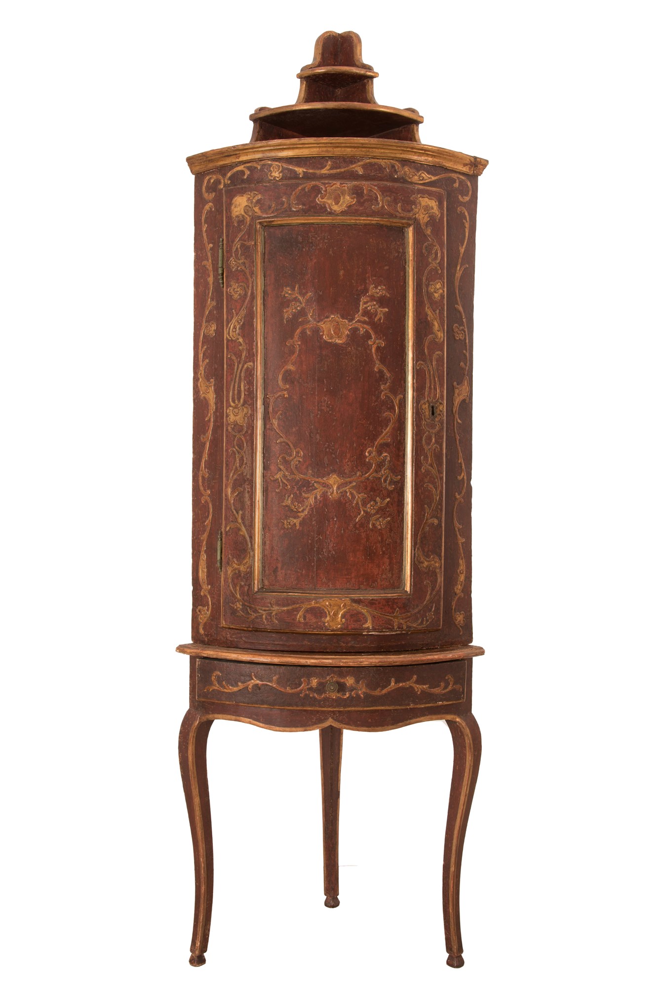 Angoliera semmicircolare a due corpi in legno laccato e dorato Veneto XVIII secolo