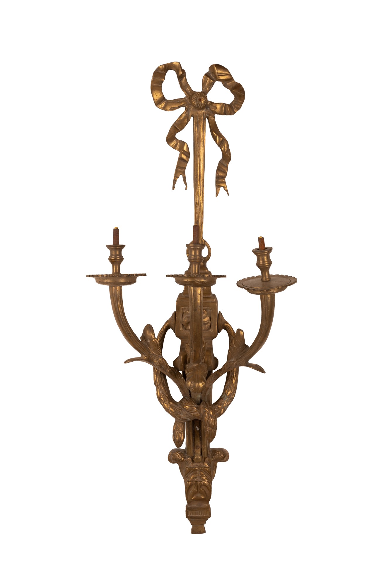 Lotto 170 | APPLIQUE IN BRONZO DORATO A 3 LUCI CON DECORO DI FESTONI, FIOCCHI E RACEMI cm 77