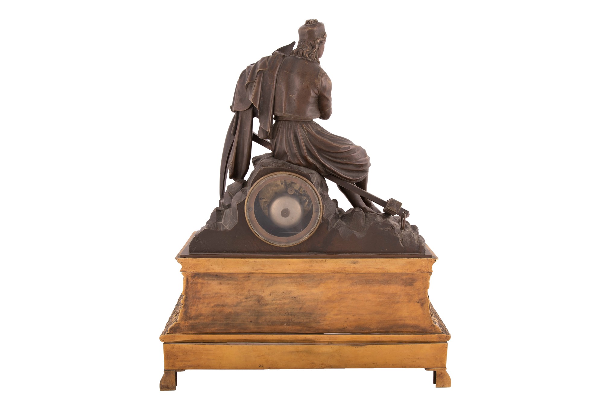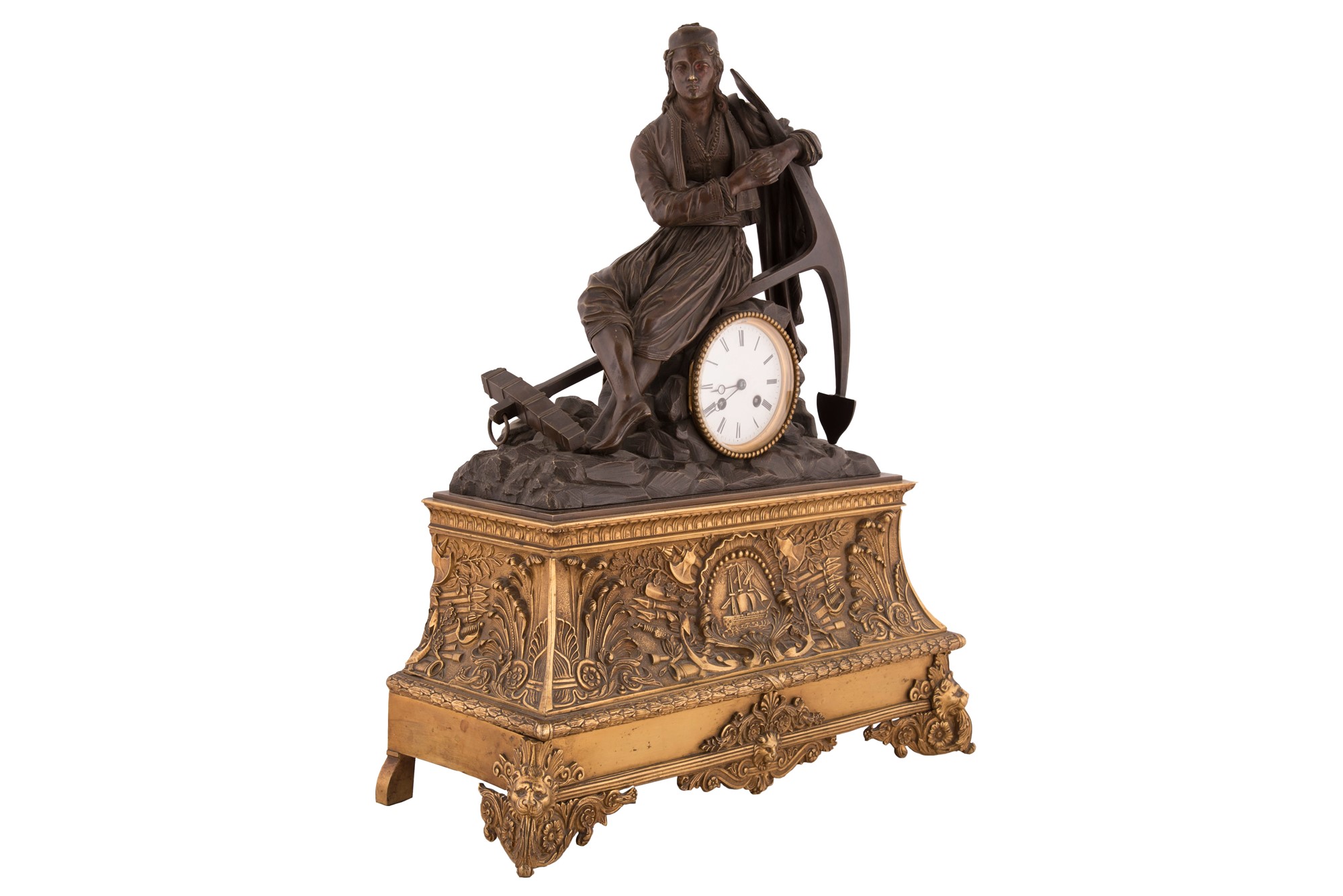 Orologio in bronzo dorato e brunito raffigurante nella parte superiore un marinaio con ancora XIX secolo