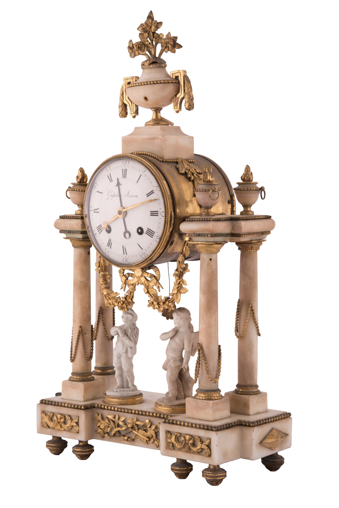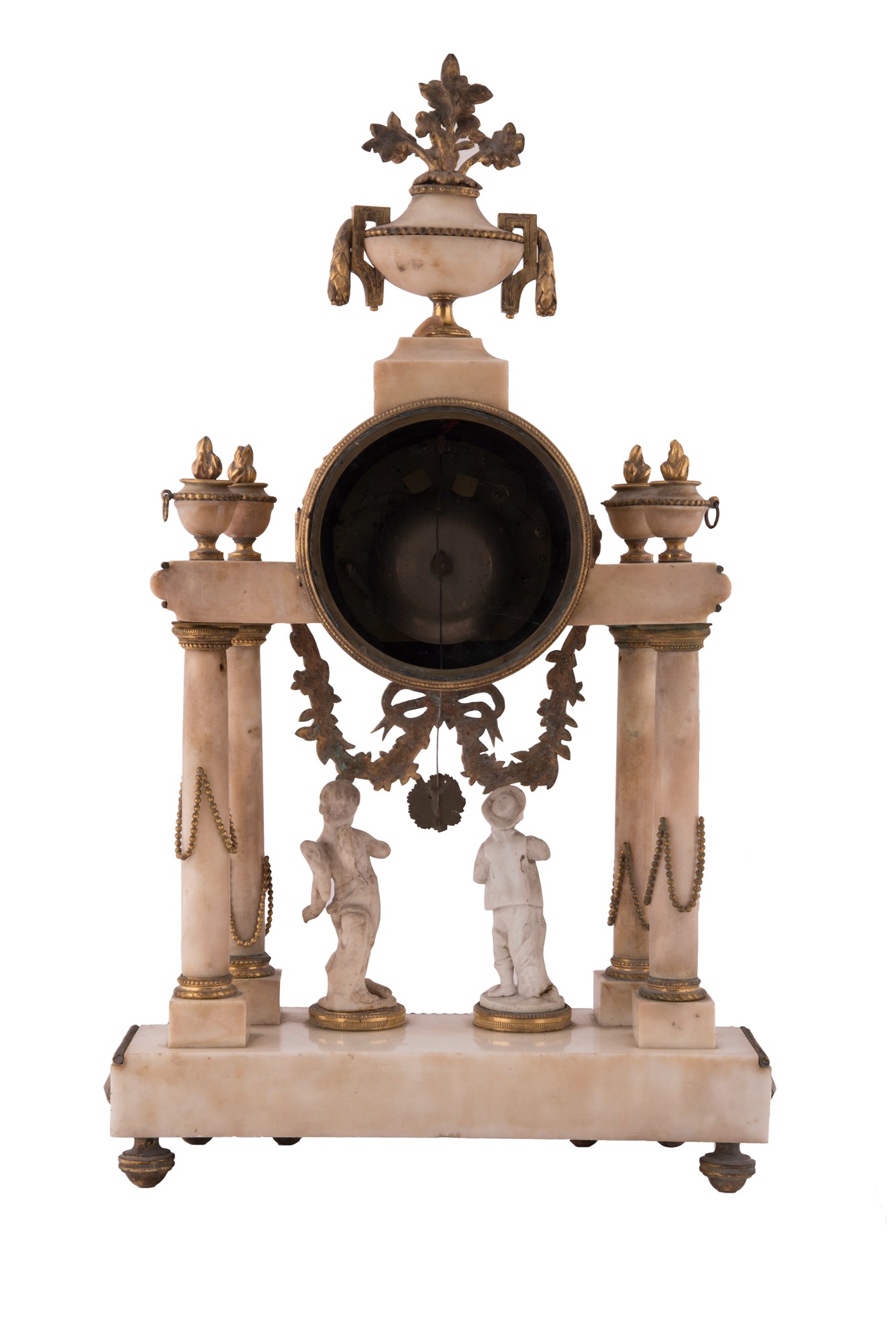 Orologio Impero da tavolo in marmo e bronzo dorato XIX secolo