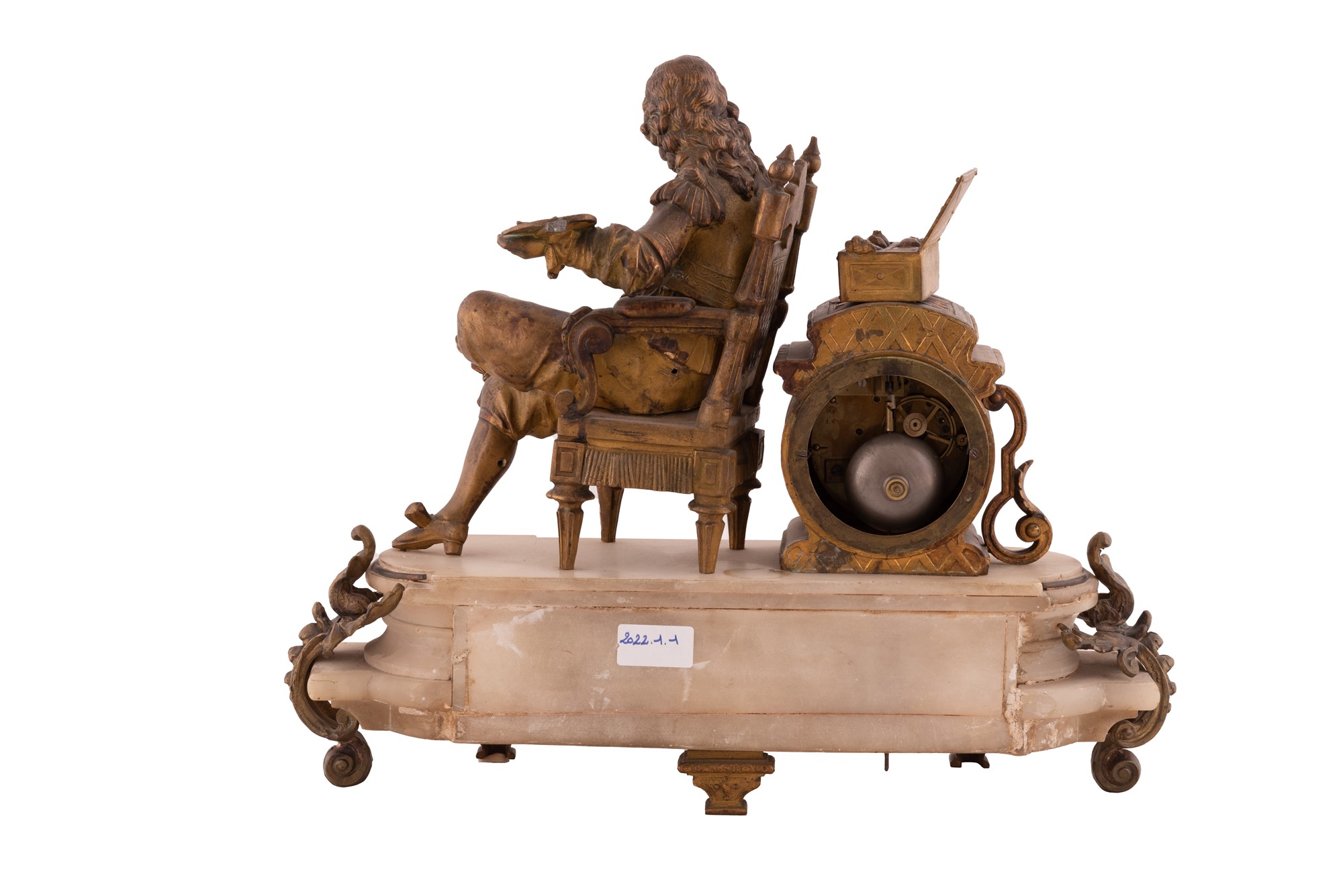 39x43x15 cm 39x43x15 cm XIX Secolo Orologio da camino in bronzo e onice raffigurante figura di pittore.