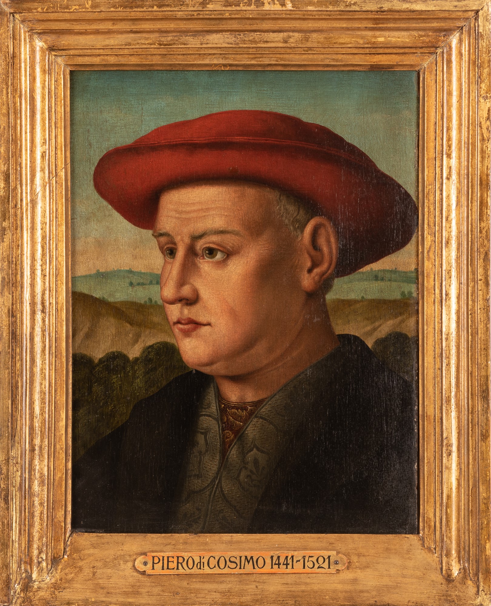 Olio su tavola cm 33x25; con cornice cm 43x35 Olio su tavola cm 33x25; con cornice cm 43x35 Targhetta in ottone sulla cornice dorata recante la dicitura " Piero di Cosimo 1441-1521".