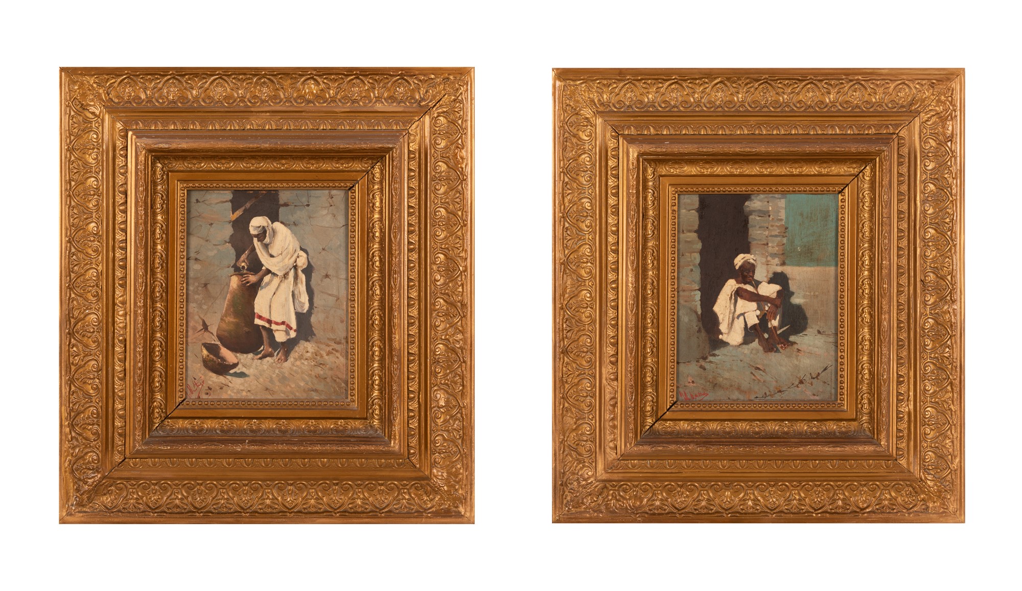Coppia di dipinti raffiguranti berberi XIX secolo