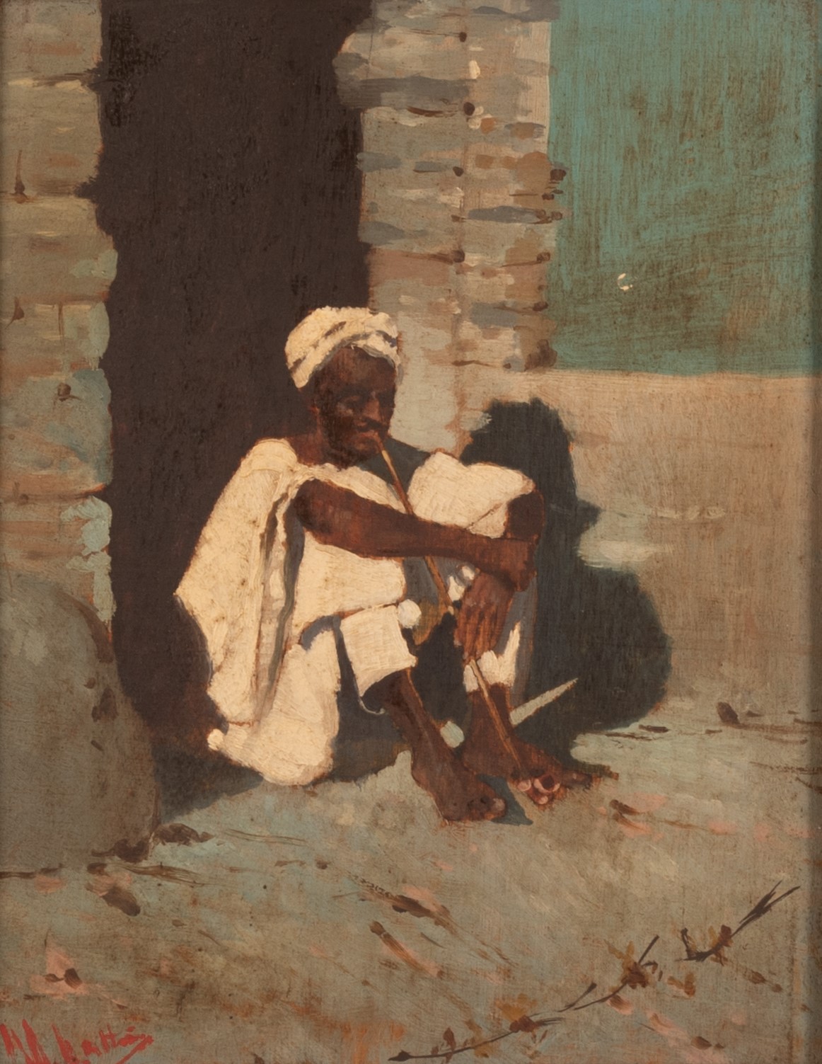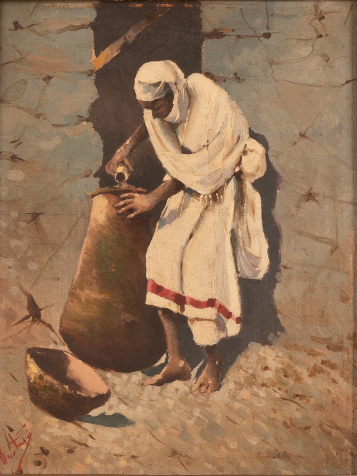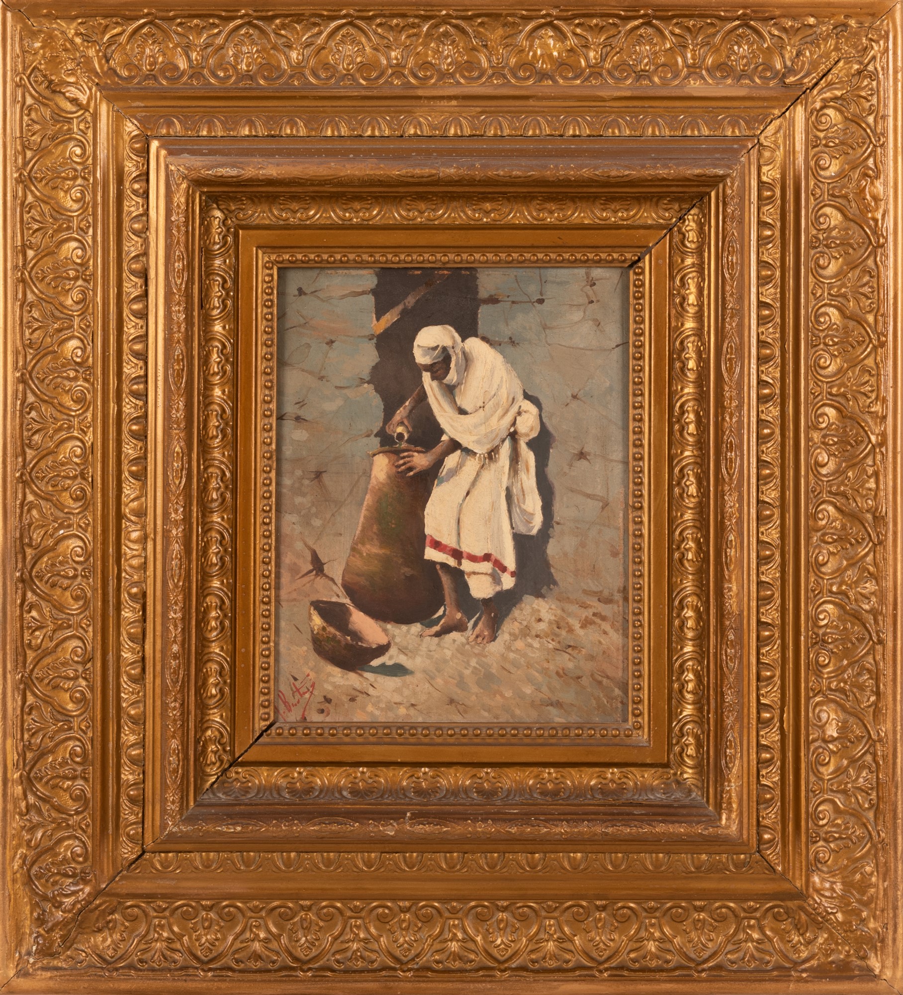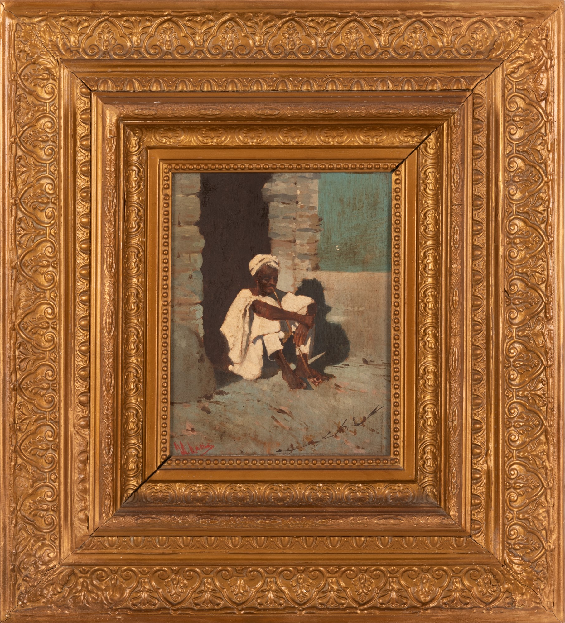 Olio su tavola cm 25x20; con cornice cm 52x47 Olio su tavola cm 25x20; con cornice cm 52x47 XIX secolo Firma illegibile in basso a sinistra