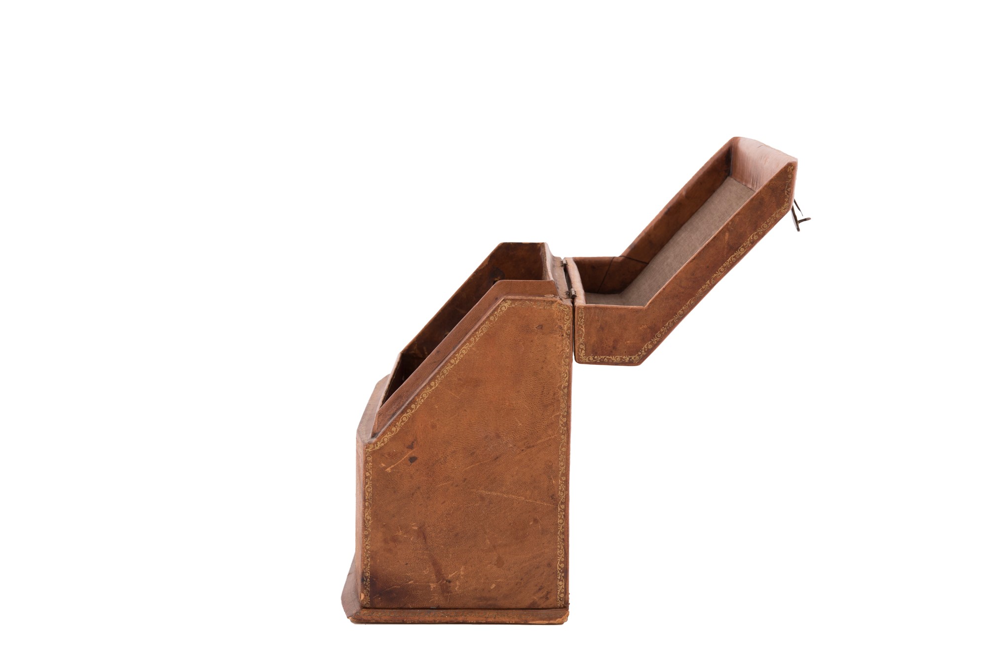 Cofanetto portadocumenti in cuoio arricchito da decorazioni in oro