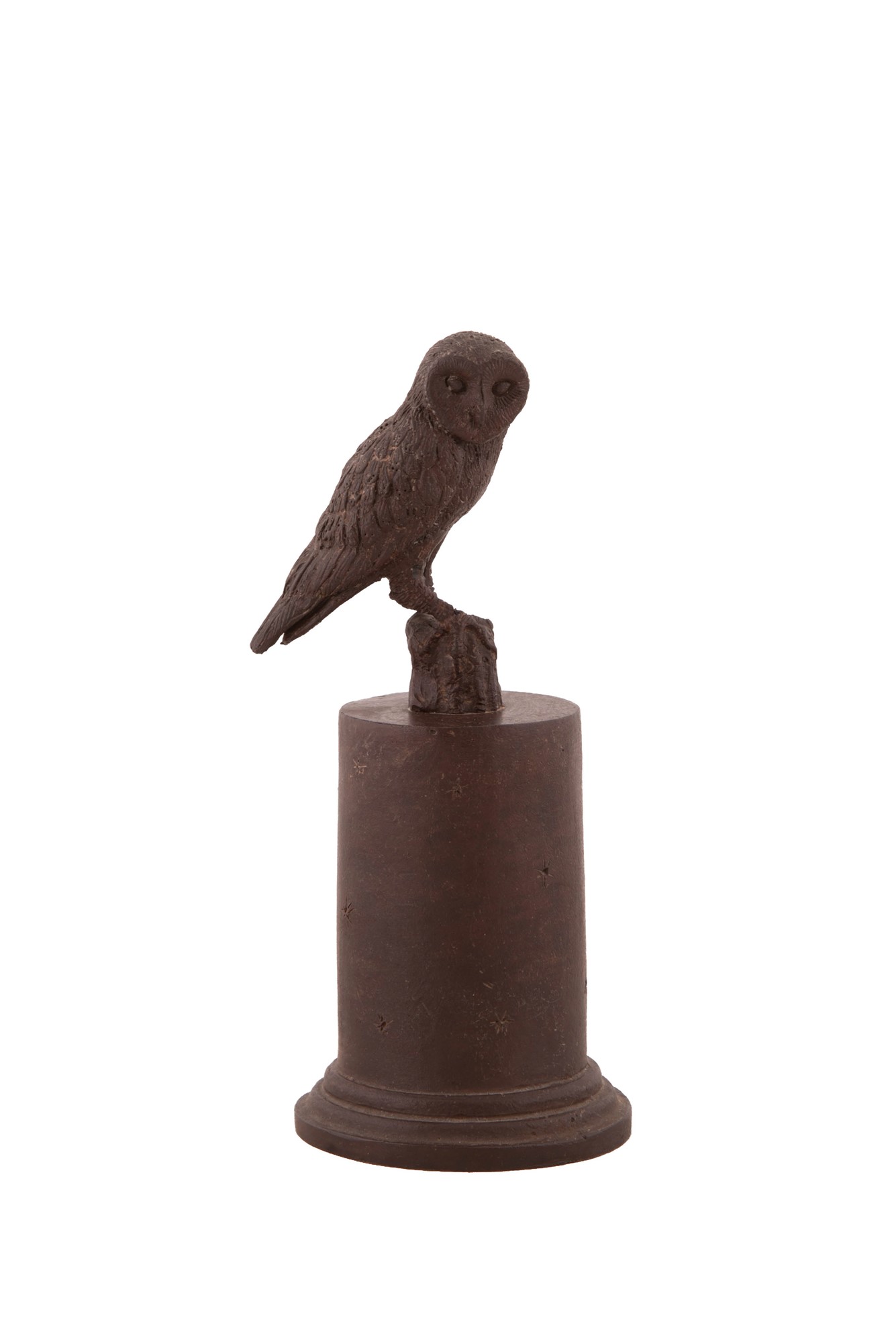 Piccola scultura in ferro raffigurante gufo su colonna cm 16x6