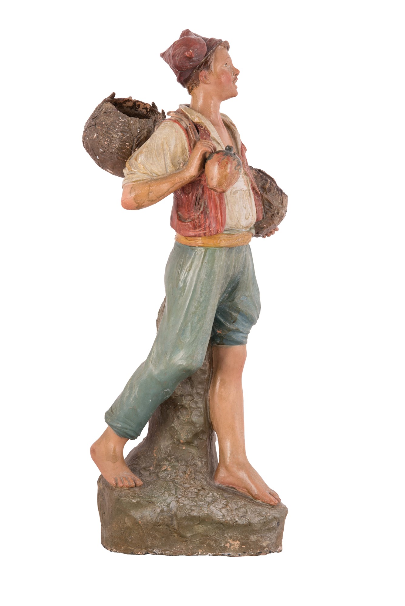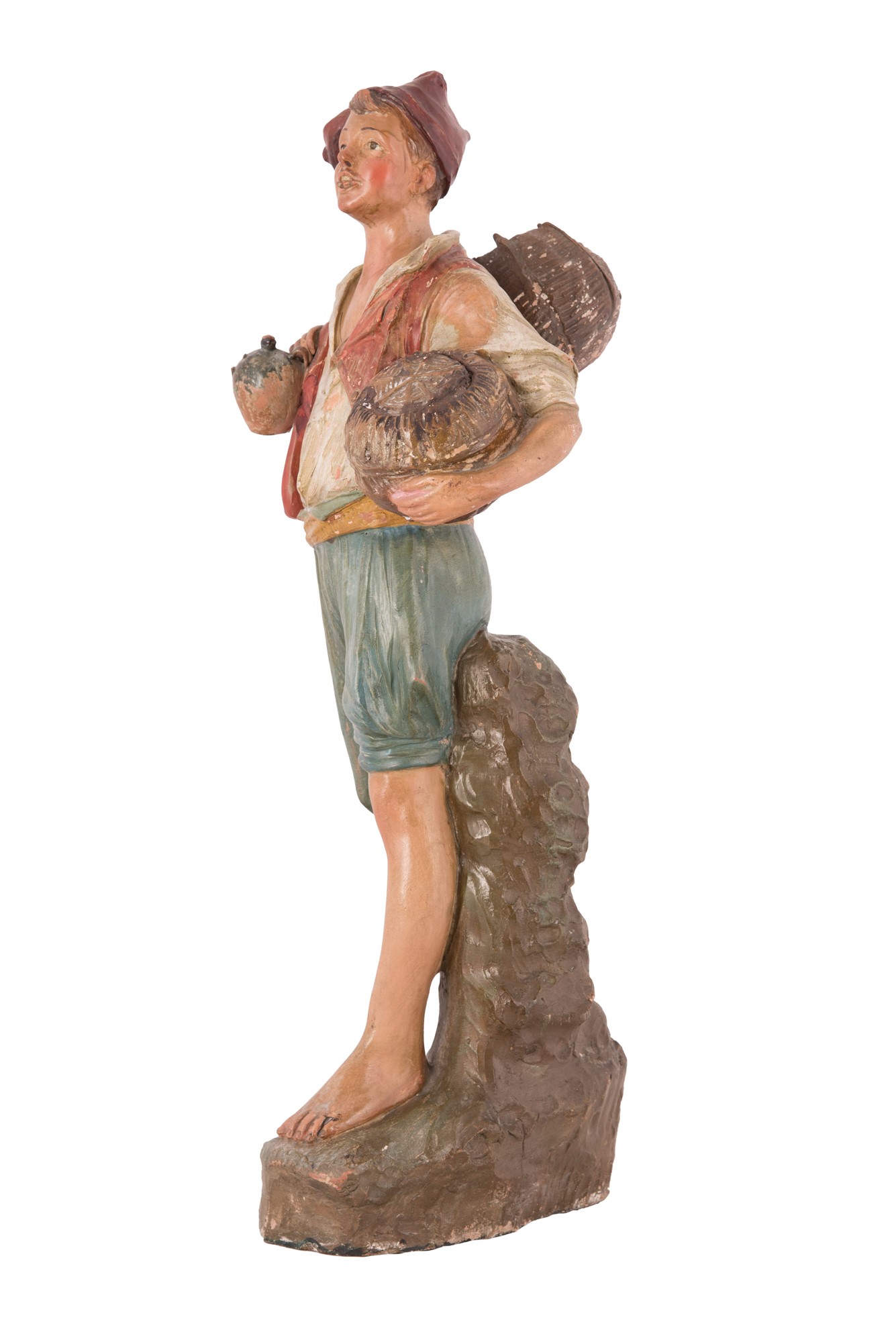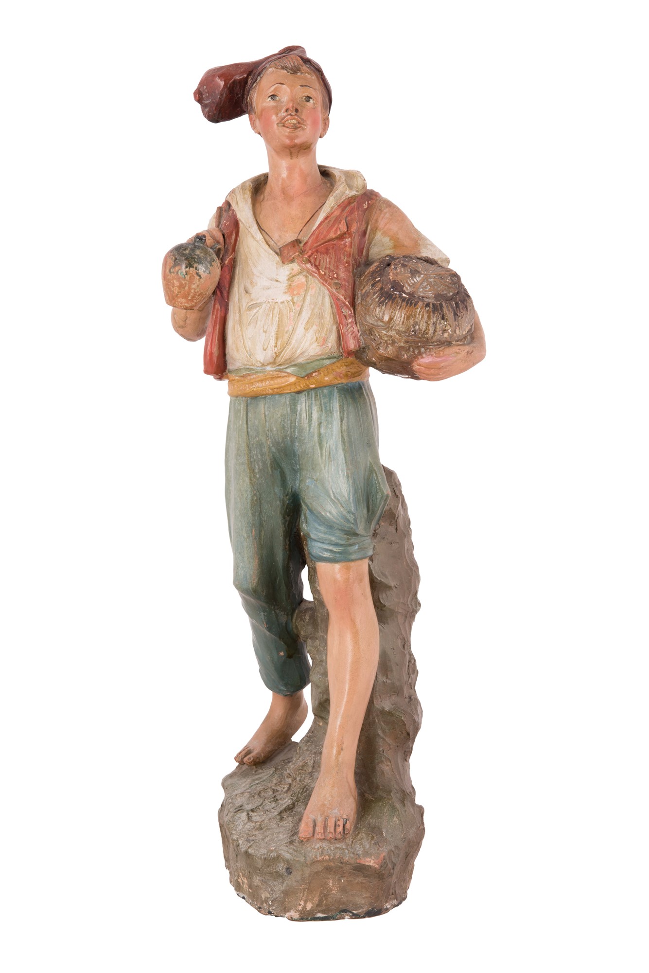 Scultura in terracotta Napoli raffigurante giovane pescatore XIX secolo altezza cm 60