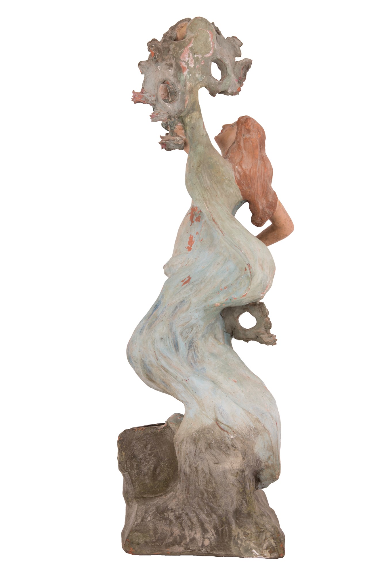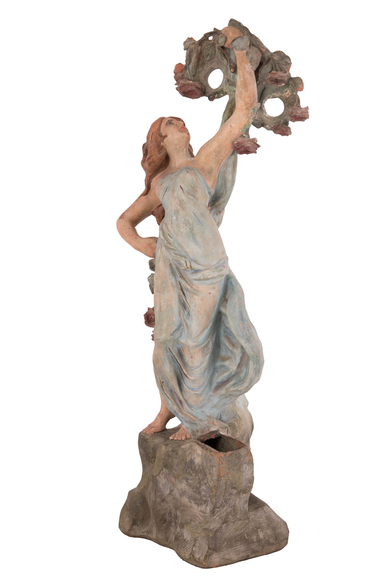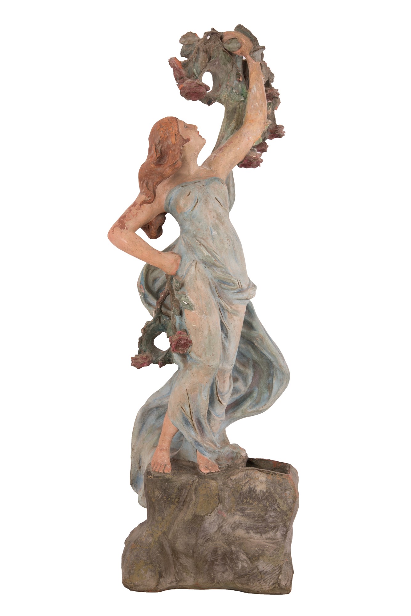 Statua stile Liberty in terracotta dipinta raffigurante allegoria della primavera XX secolo