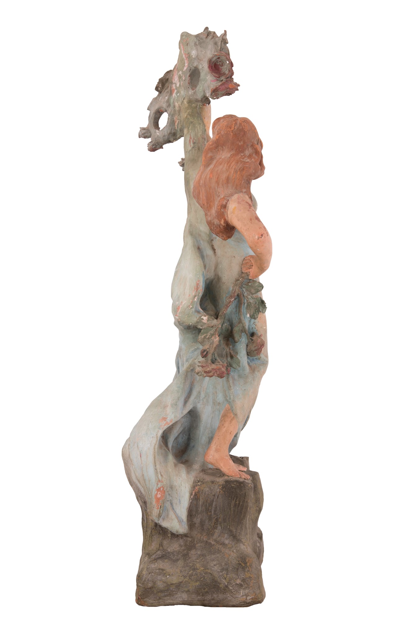 Statua stile Liberty in terracotta dipinta raffigurante allegoria della primavera XX secolo cm 90x26x19