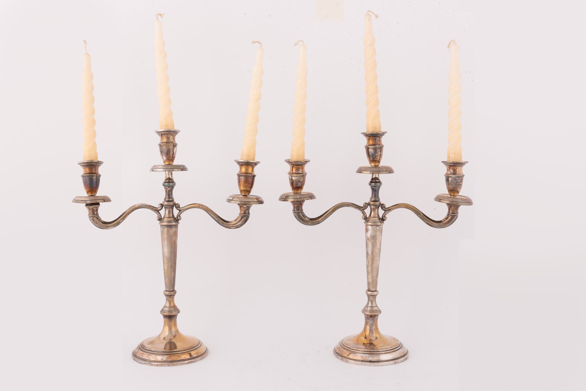Coppia di candelieri a tre luci in argento