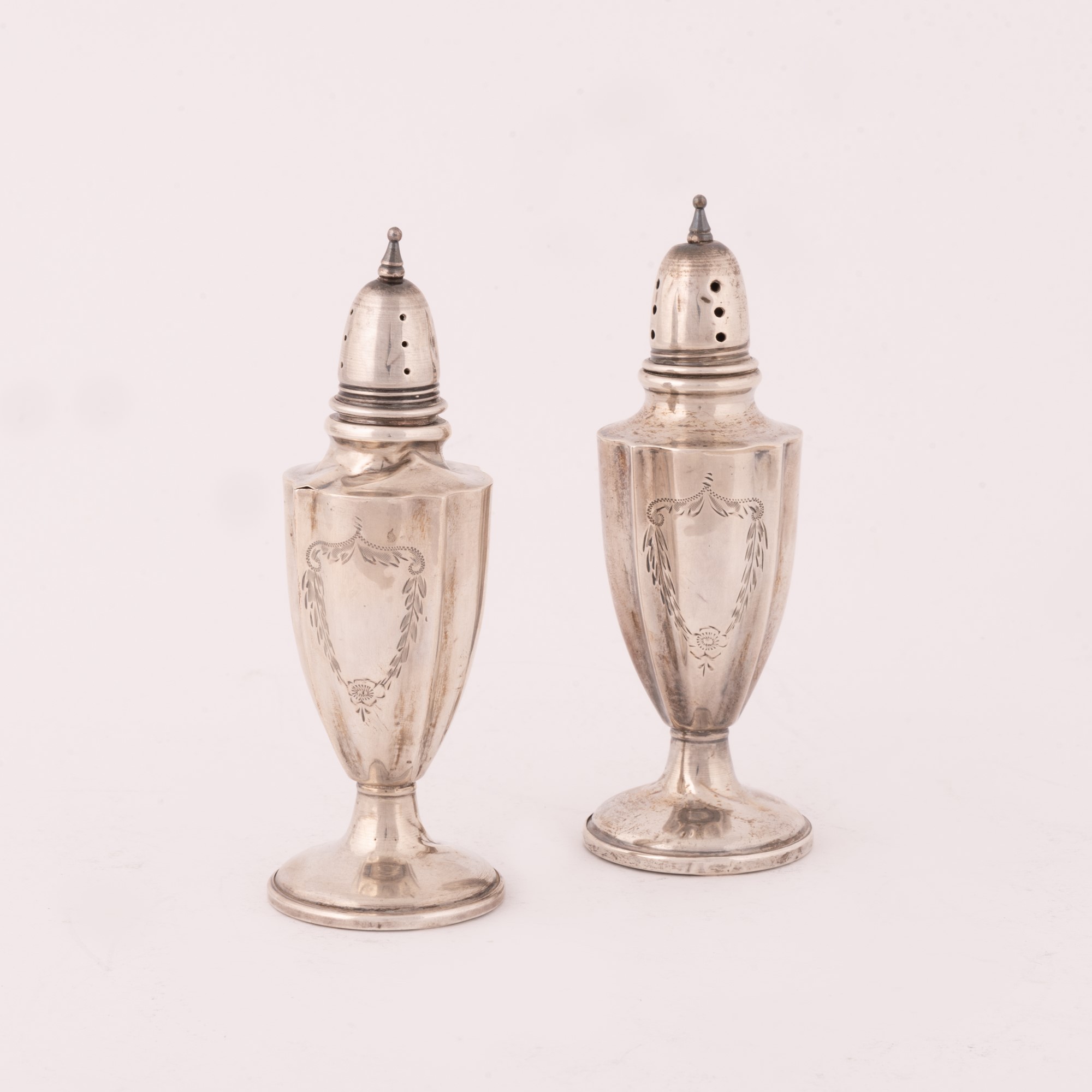 COPPIA DI SALIERINE IN ARGENTO STERING 925 XIX Sec. cm 13; peso g 94 ca