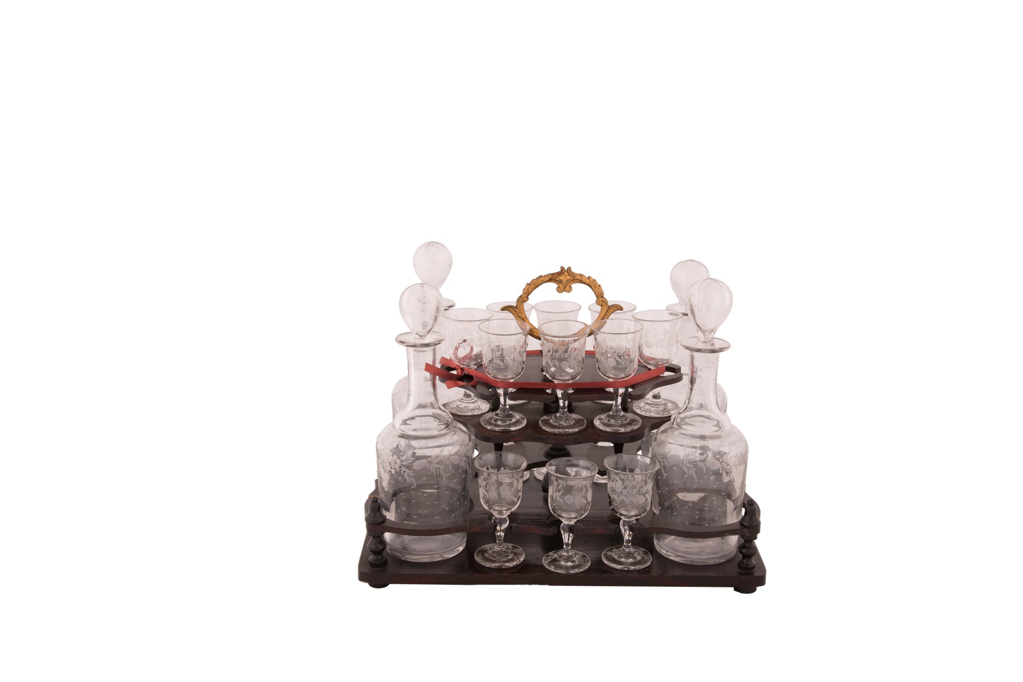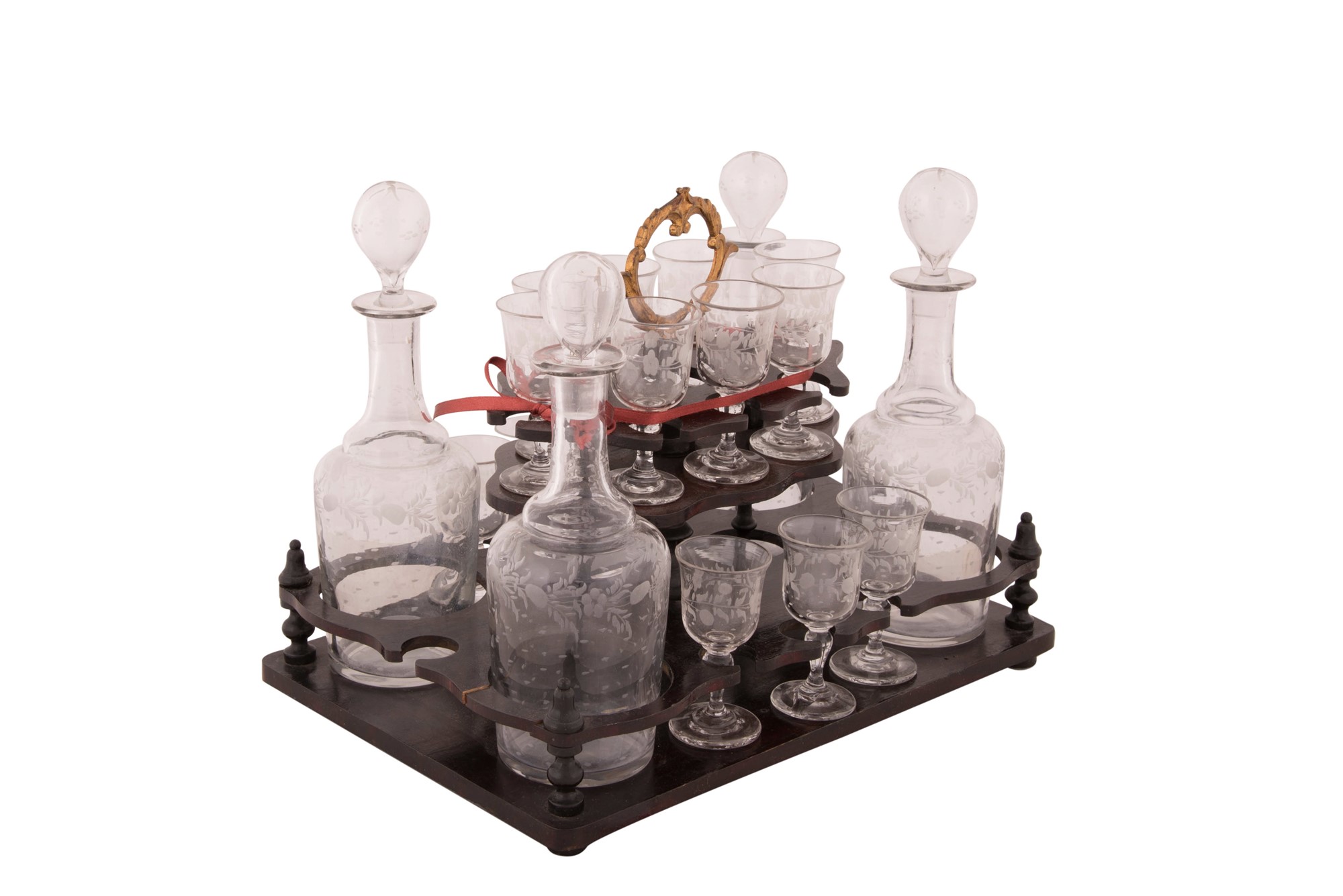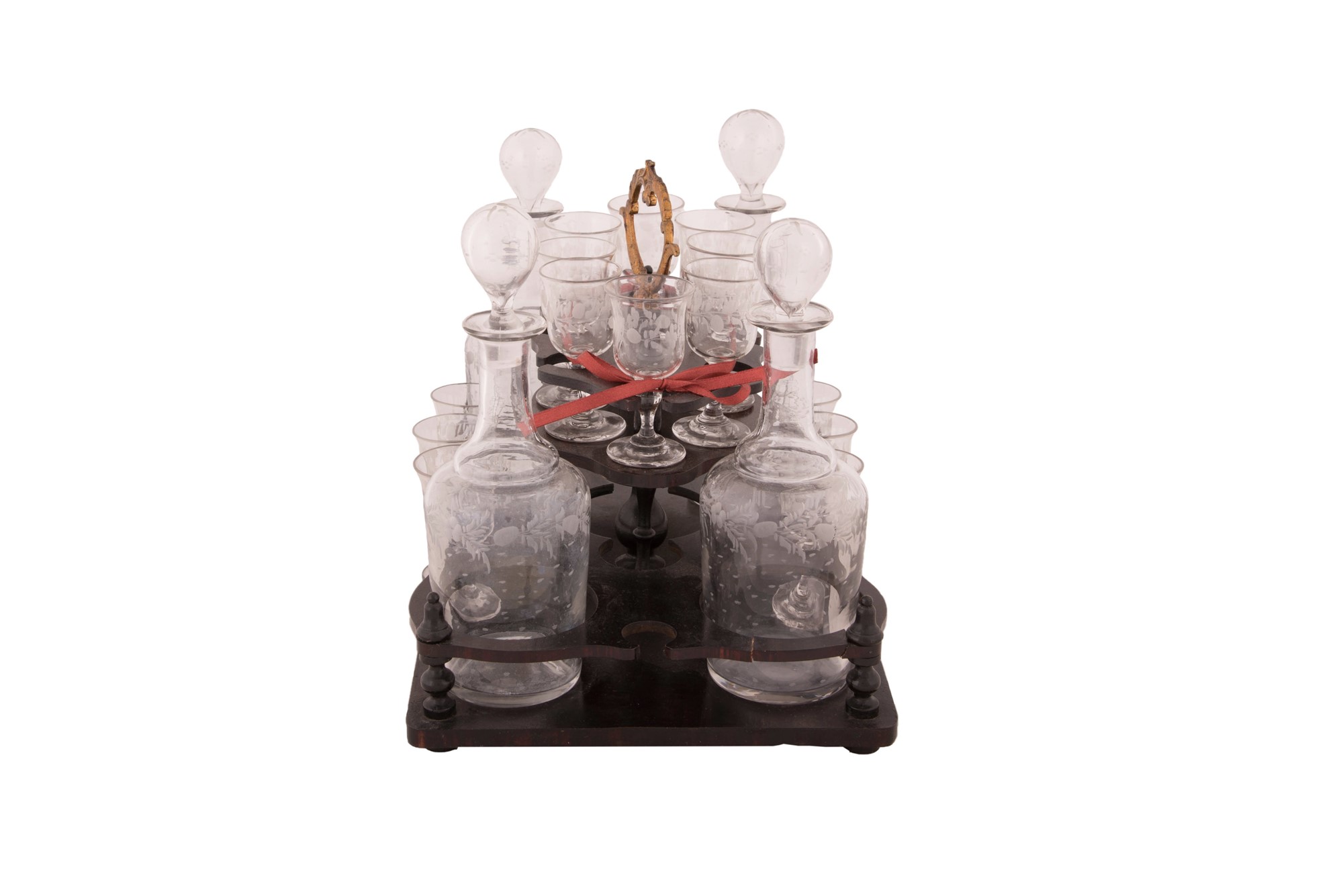 cm 20x30x20 cm 20x30x20 Composto da 4 bottiglie con tappo e 14 bicchierini in vetro finemente cesellato.