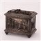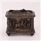 SCATOLA SPAGNOLA IN METALLO ARGENTATO DECORATA CON ALTORILIEVI RAFFIGURANTI SCENE DI CORRIDA XIX Serc. cm 12x16x12