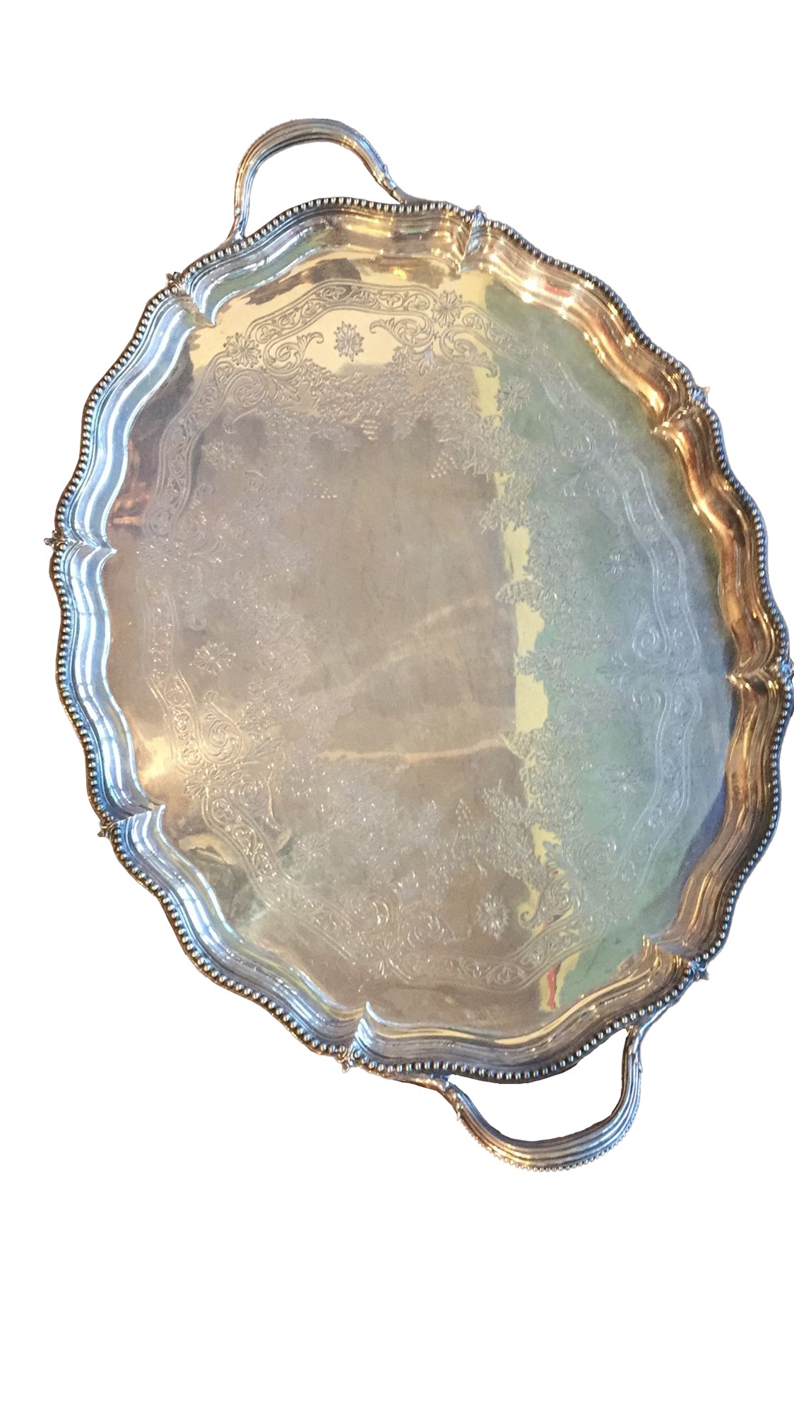 Elegante vassoio antico in argento 925 di forma sagomata con manici 1865
