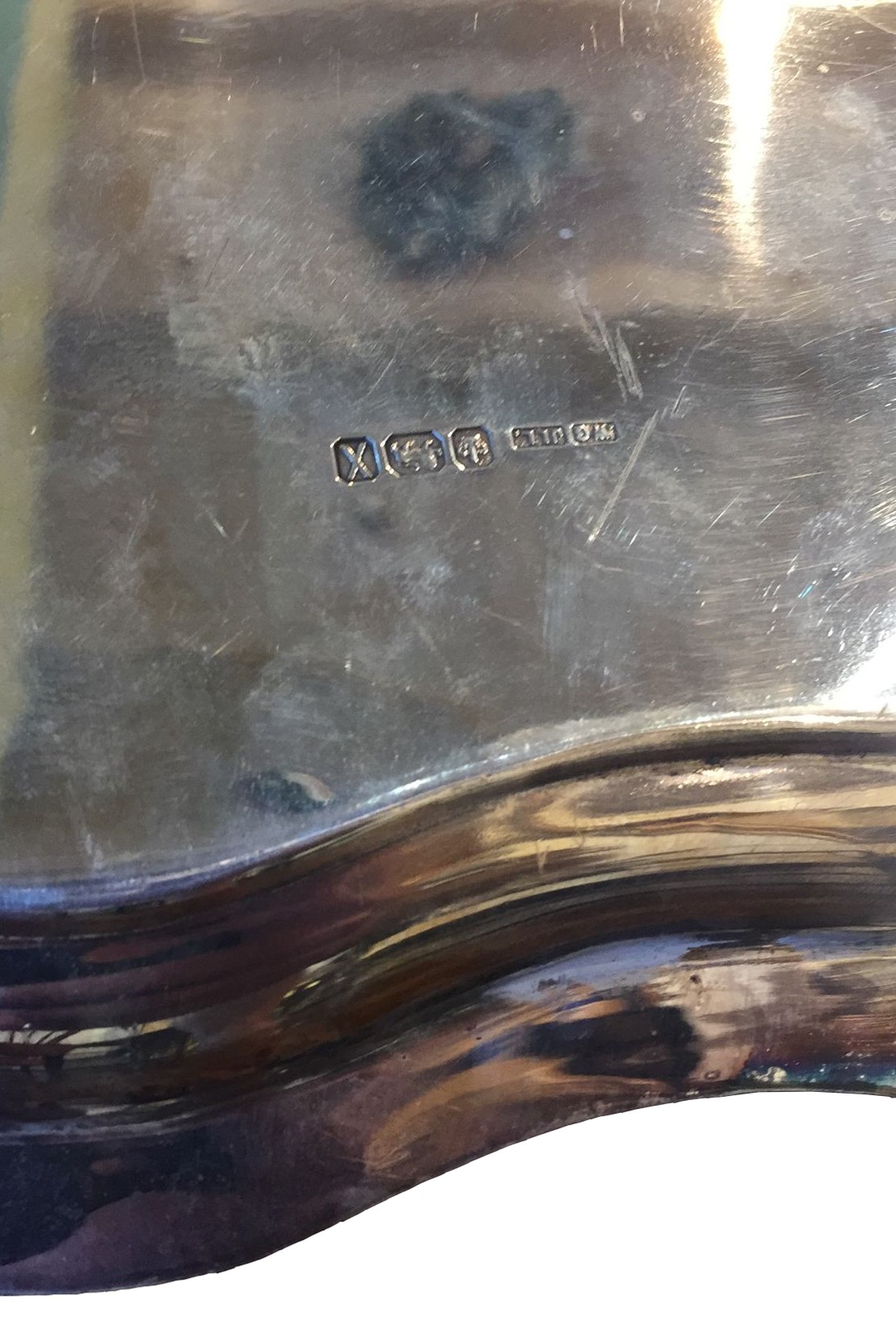 Elegante vassoio antico in argento 925 di forma sagomata con manici 1865 scatola originale cm 78x54; vassoio cm 70x47; peso g 3380 ca