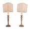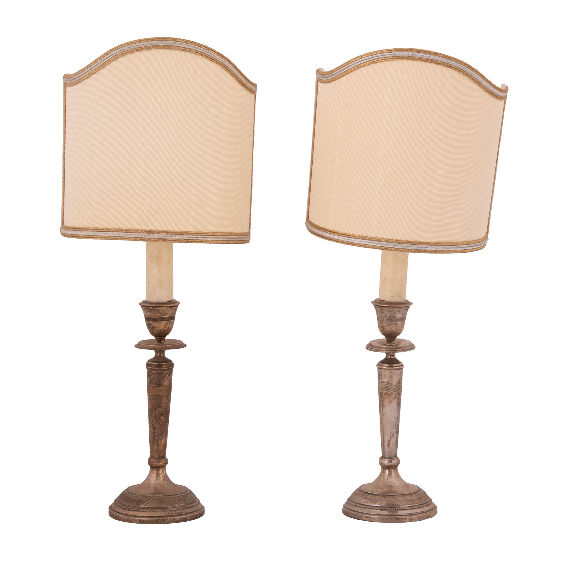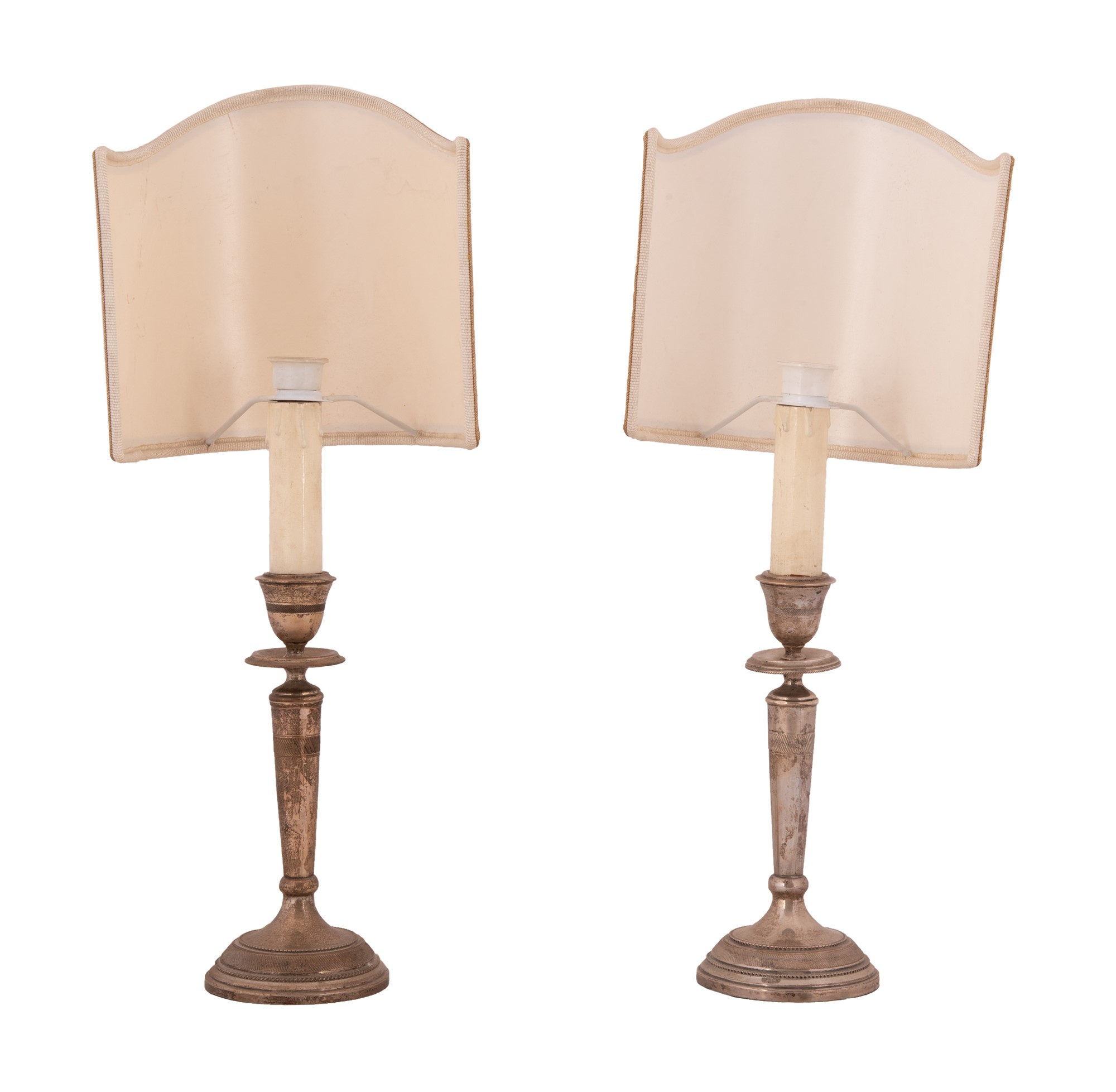 Coppia di candelieri in argento montati a lampada con ventoline altezzacm 20; con ventoline cm 40