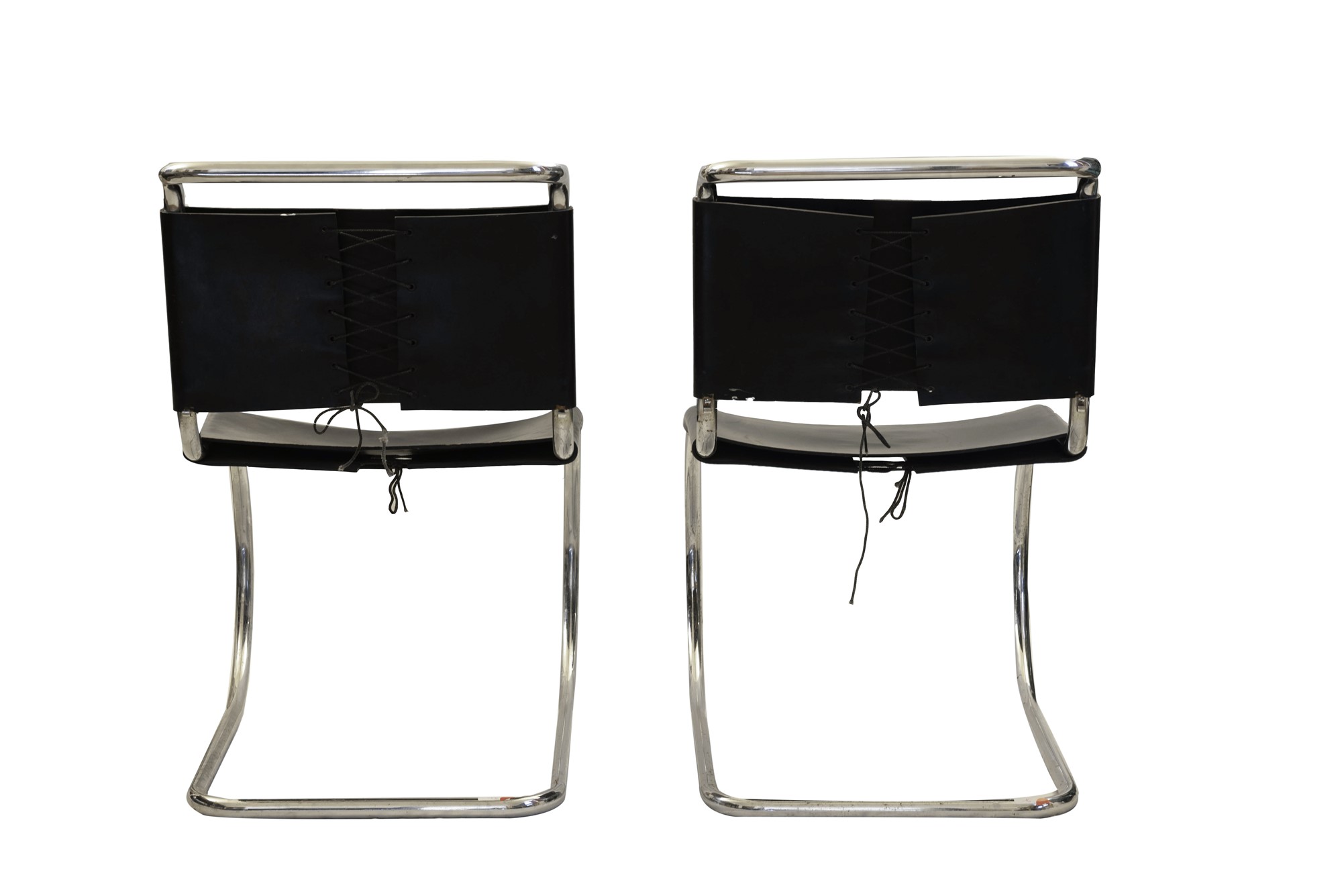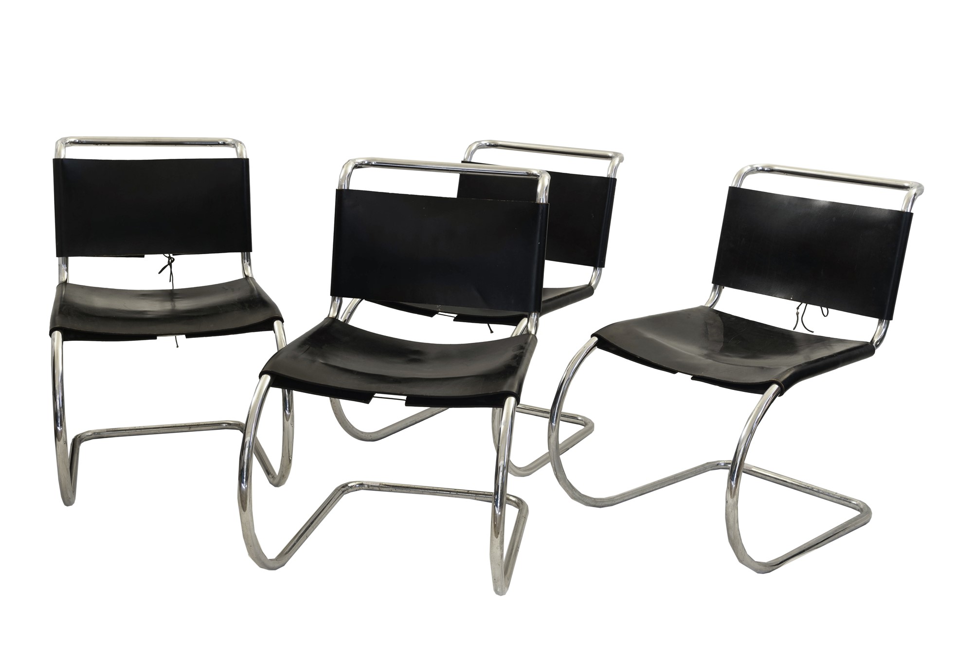 4 sedia anni ’80 in stile Bauhaus disegnata da Mart Stam e Marcer Beuer in acciaio e cuoio nero seduta altezza cm 45