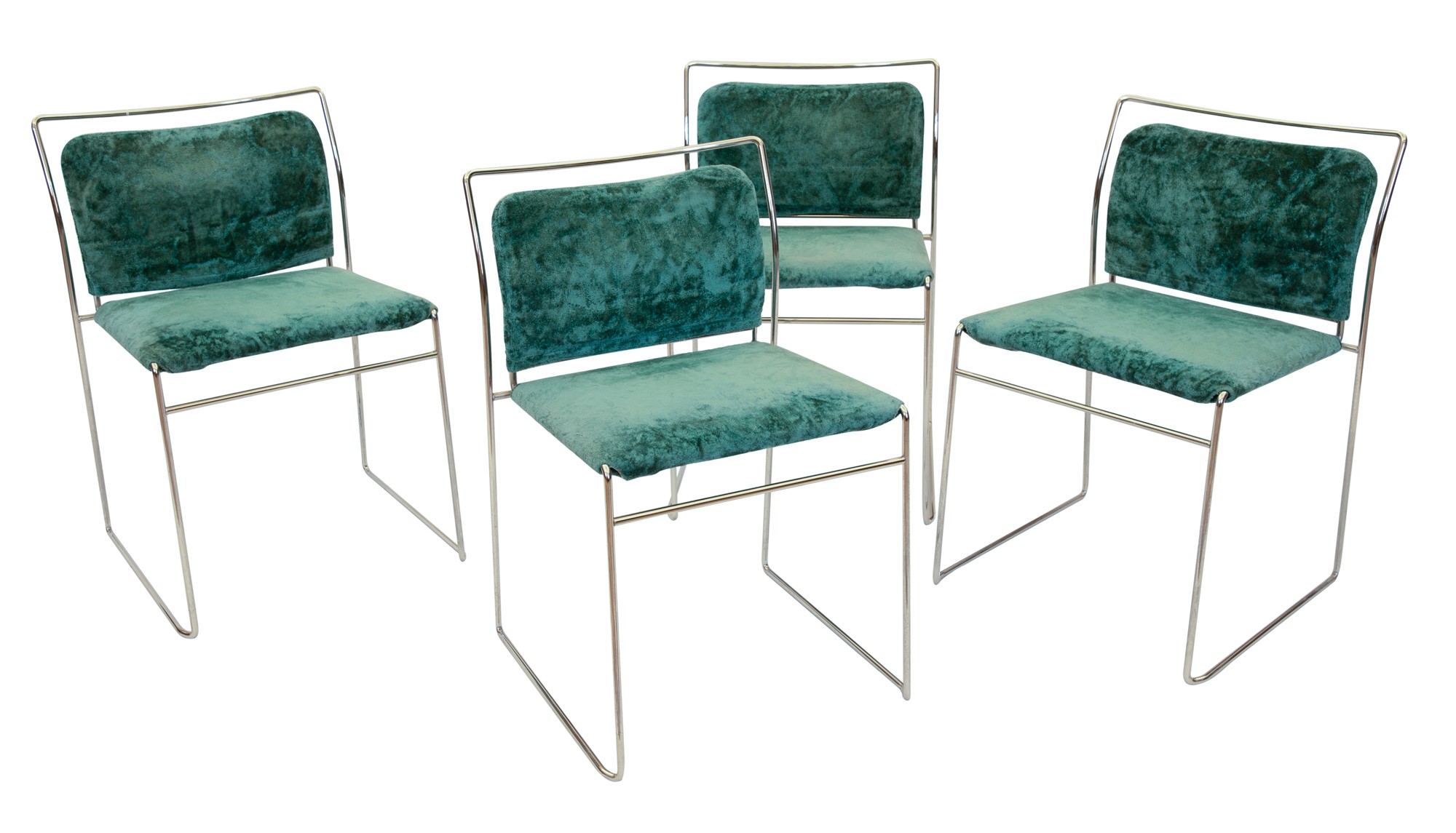 Kazuhide Takahama (Nobeoka, 1930 - Bologna, 2010) Quattro sedie Tulu in velluto verde smeraldato cm 73x48x42