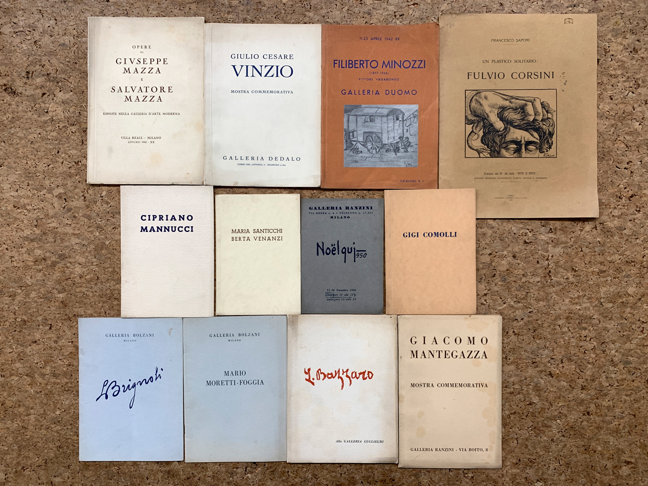 Lotto unico composto da 12 cataloghi relativi a storiche esposizioni dei seguenti artisti: Gigi Comolli, Noelqui, Maria Santicchi e Berta Venanzi, Cipriano Mannucci, Luigi Brignoli, Mario Moretti-Foggia, Leonardo Bazzaro, Giacomo Mantegazza, Giuseppe e Salvatore Mazza, Giulio Cesare Vinzio, Filiberto Minozzi, Fulvio Corsini
