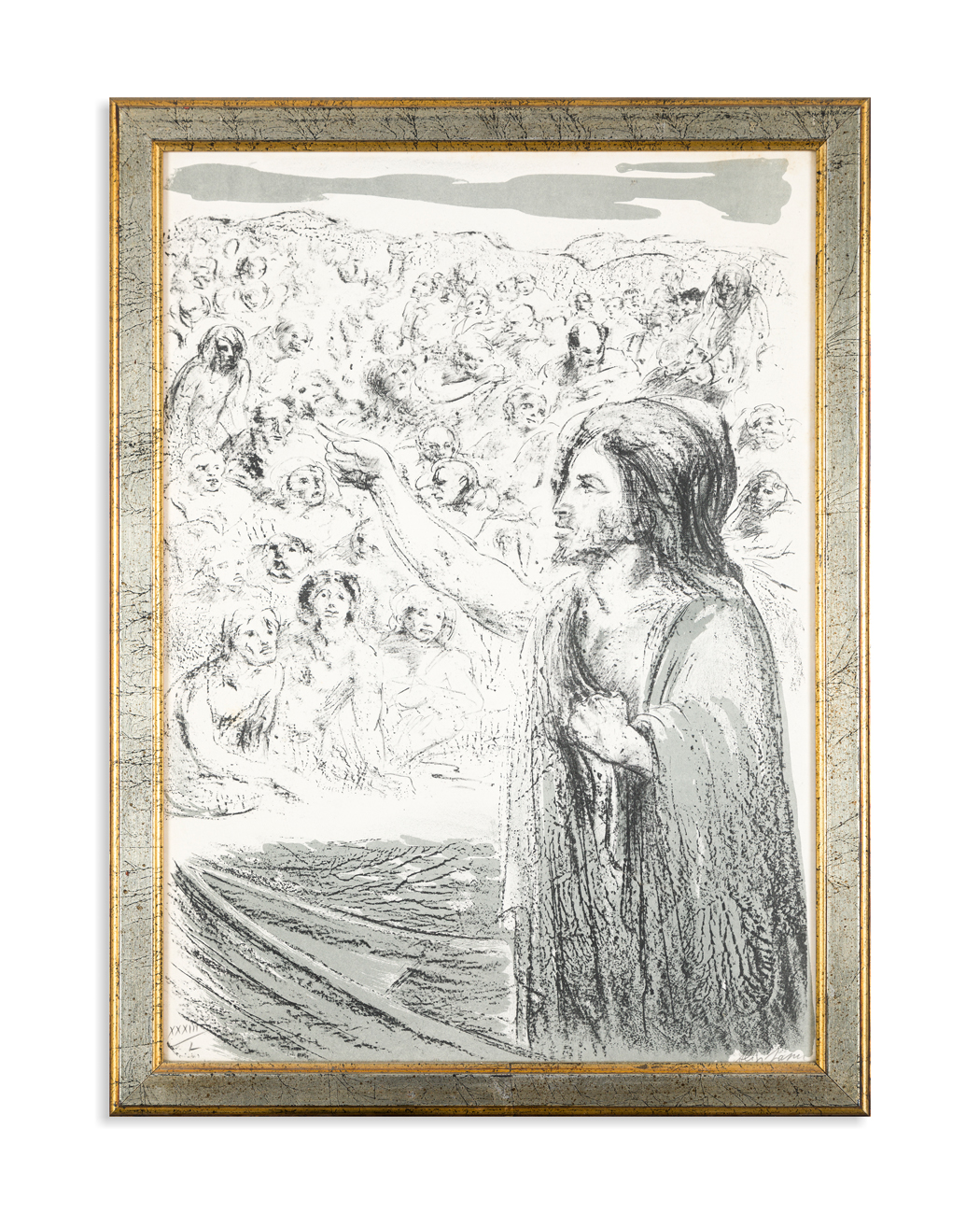 La litografia del presente esemplare, ben incorniciata, reca firma e numerazione (Esemplare XXXIII/L) a matita al fronte