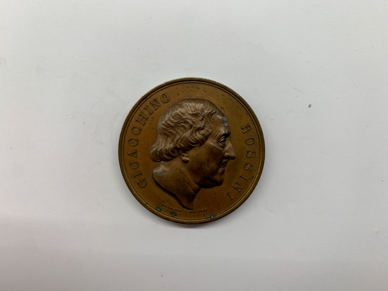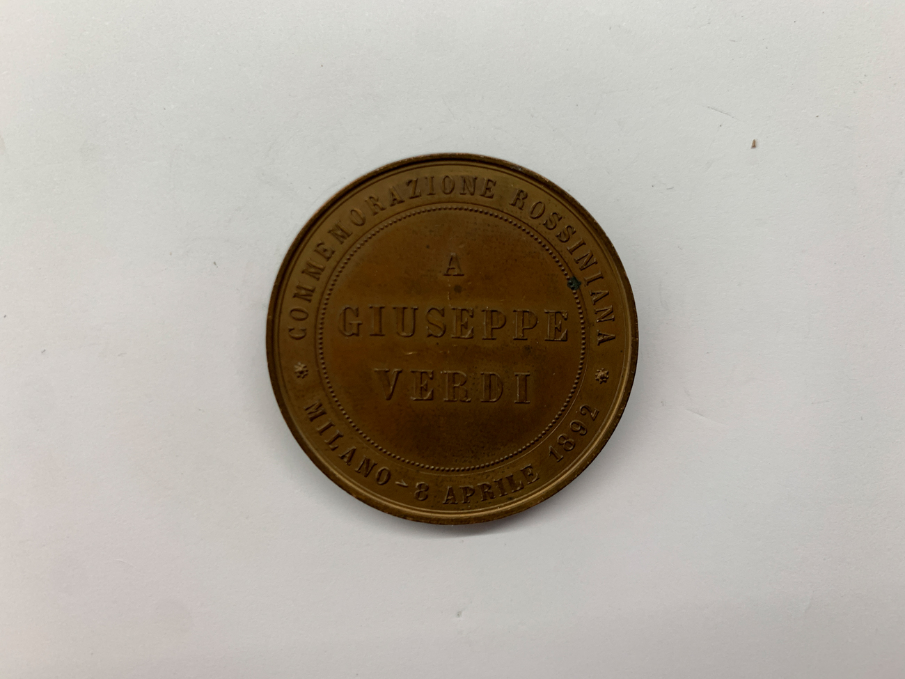 Medaglia coniata, realizzata per la commemorazione Rossiniana dedicata a Giuseppe Verdi