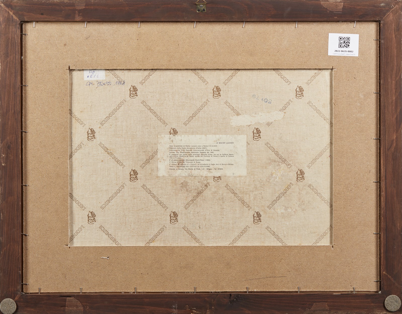 LAZZARO WALTER (1914 - 1989) Senza titolo. 1968. Olio su tavola. Cm 50,00 x 35,00. Firma e anno in basso. Provenienza: Galleria Il Castello, Milano; Collezione privata, Milano. Lievi difetti. . Cornice presente