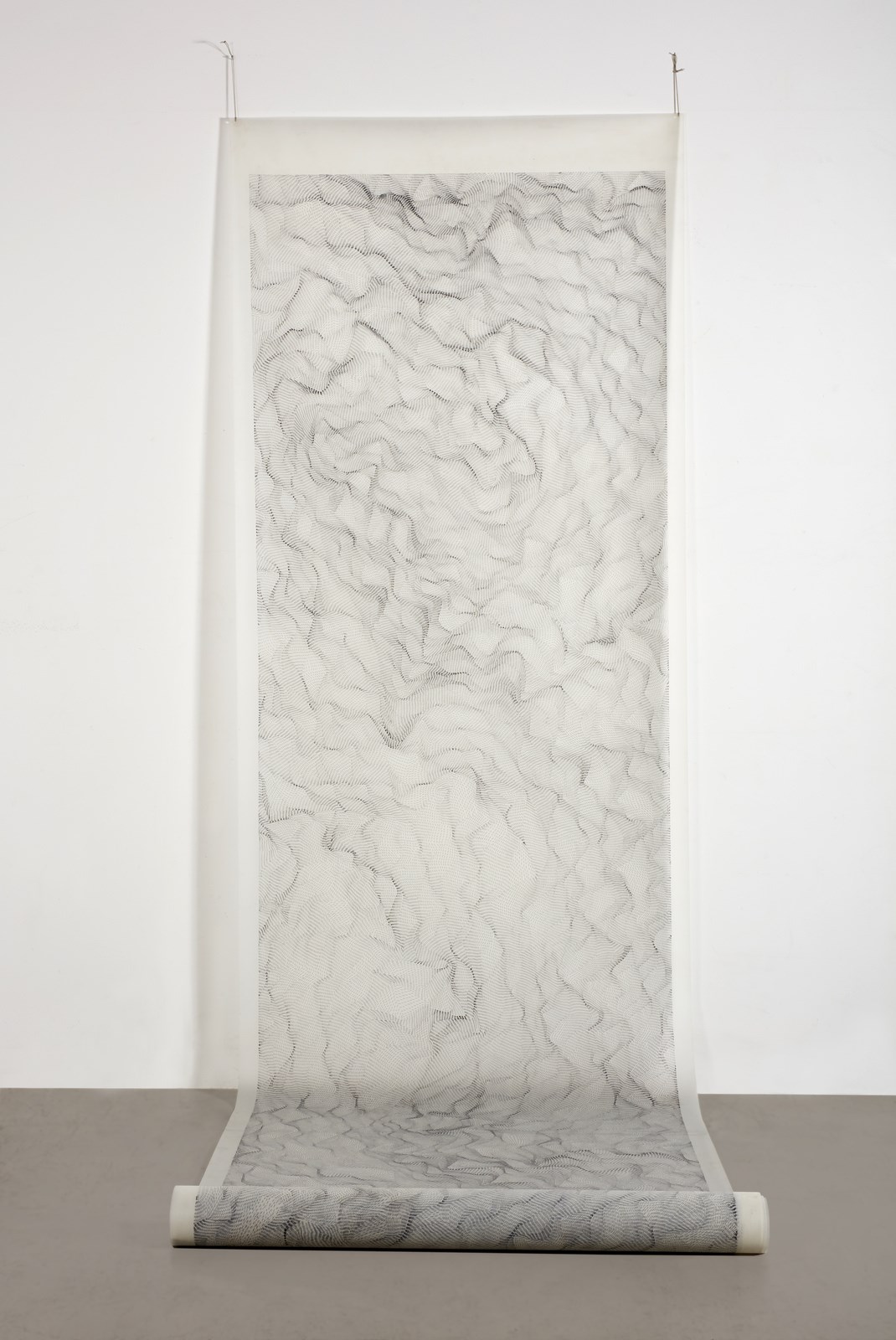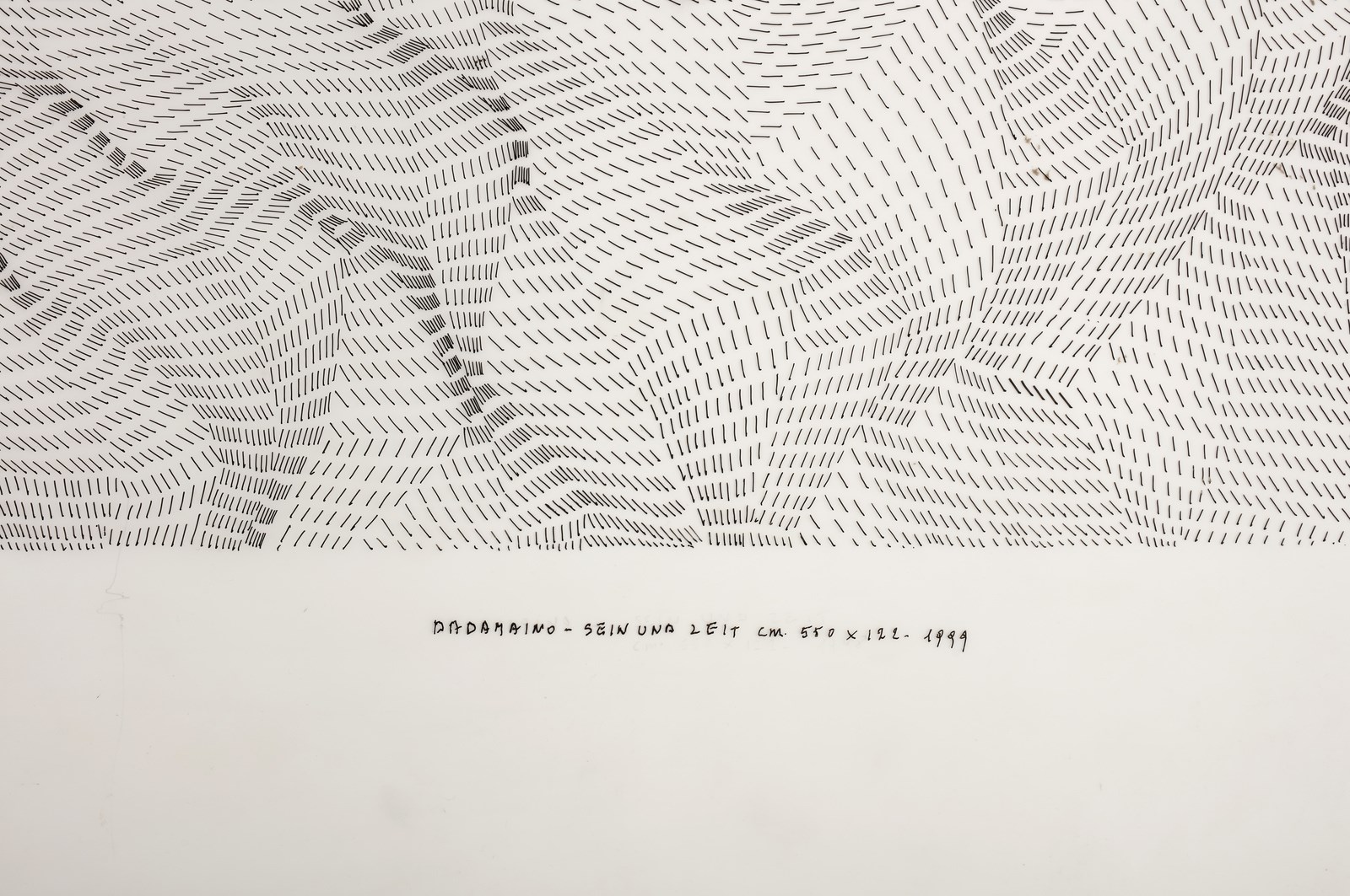 DADAMAINO (1935 - 2004) Sein und zeit. 1999. Mordente su poliestere. Cm 122,00 x 550,00. Firma, titolo e anno in basso a destra. Autentica su fotografia di Flaminio Gualdoni riportante il relativo numero d'inventario (Aprile 2008). Esposizione: Dadamaino - Retrospektive 1958 - 2000, Museum Bochum, 16 Gennaio - 5 Marzo 2000. Pubblicazione: Dadamaino, Kunstmuseum Bochum, Bochum, 2000, p. 188 n. 108. Provenienza: Collezione privata, Milano; Il Ponte Casa d'aste; Collezione privata, Brescia. Ringraziamo l'Archivio Dadamaino per aver confermato la presenza dell'opera nei loro archivi.