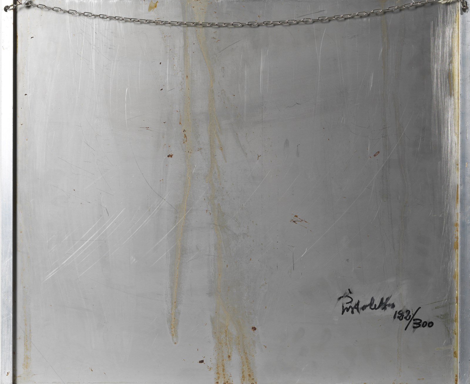 PISTOLETTO MICHELANGELO (n. 1933) Fiat - ritmo. 1978. Serigrafia su lastra di acciaio. Cm 60,50 x 50,00. 122/300. Al retro tiratura e firma a pennarello. Edizione totale: 300 esemplari numerati da 1/300 a 300/300. Realizzata per la Fiat. Difetti.