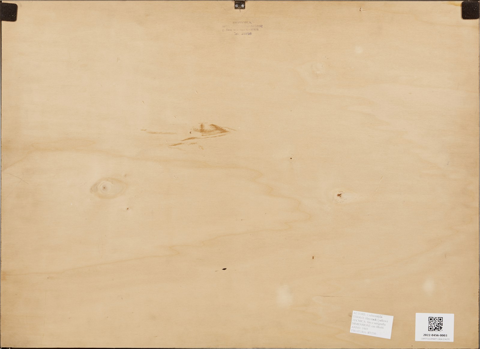 LICHTENSTEIN ROY (1923 - 1997) Yellow haystack. 1969. Serigrafia e litografia. Cm 66,00 x 48,00. 87/250. Tiratura, firma e anno in basso a matita. Timbro a secco Editore Gabriele Mazzotta, Milano. in basso a destra. Edizione totale: 250 esemplari. Carta C.M. Fabriano. Pubblicazione: The Prints of Roy Lichtenstein: A Catalogue Raisonné 1948-1997, Corlett, p. 106/107, no. 84. Lievi difetti. Cornice presente