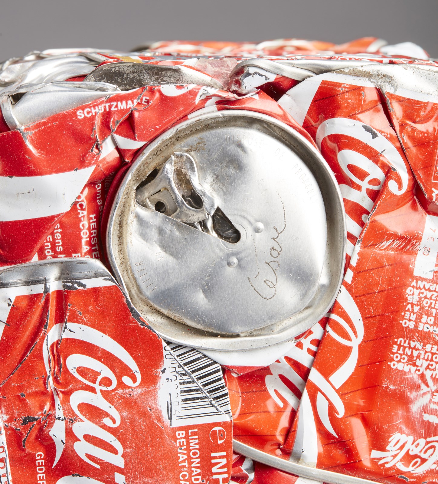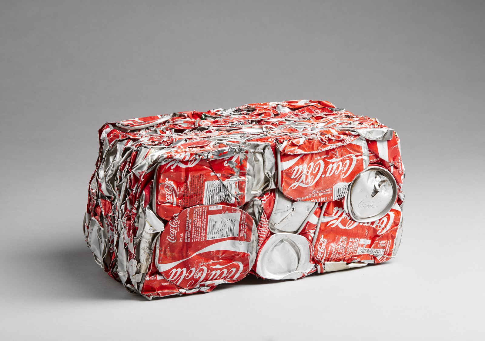 CESAR (1921 - 1998) Compression. 1990. Compressione di lattine. Cm 16,60 x 33,20 x 17,50. Firma incisa in basso. Opera archiviata presso l'Archivio Denyse Durand - Ruel, France, come da documentazione fotografica allegata all'opera riportante il relativo numero d'inventario.