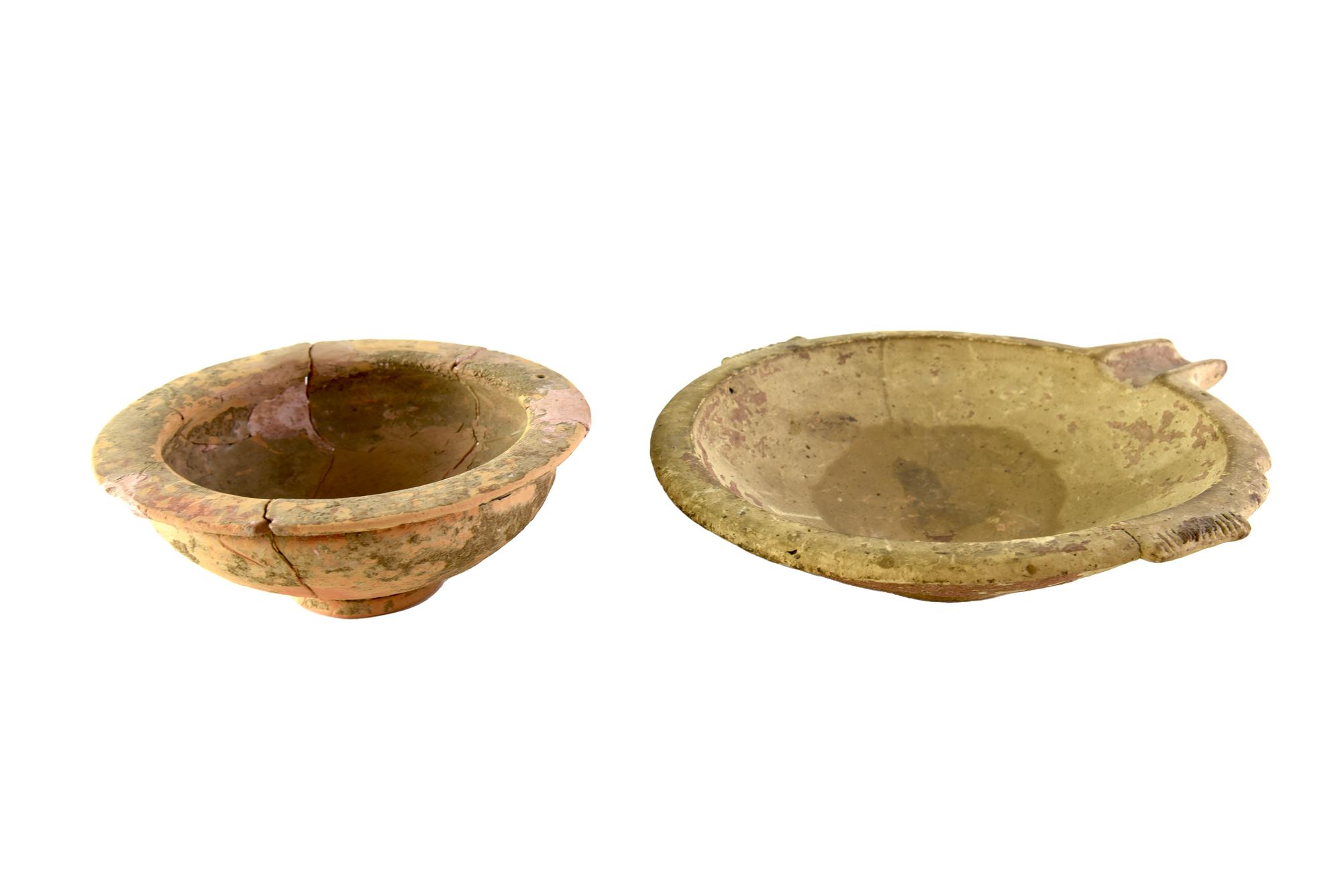 STATO DI CONSERVAZIONE: coppa ricomposta da frammenti, incrostata; mortaio integro, incrostato