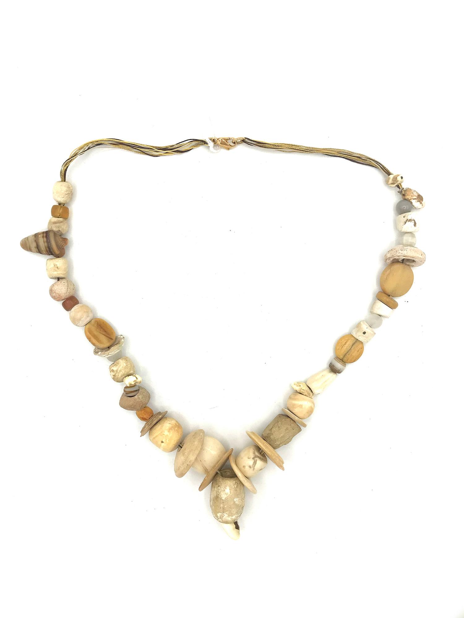 COLLANA in calcare bianco, agata, cristallo di rocca, corniola ed osso con...