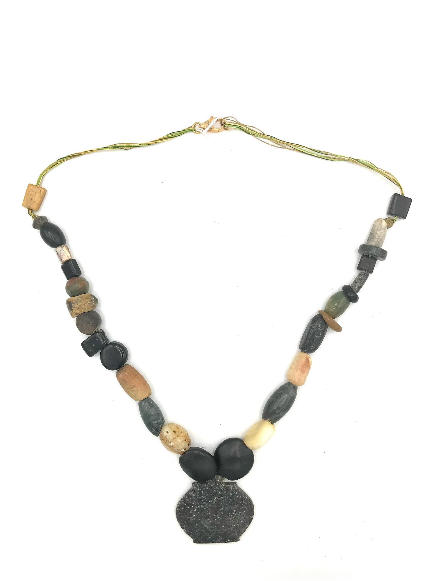 in pietre dure colorate, con vaghi cilindrici, sferici, fusiformi e prismatici, formata da elementi antichi, lung cm 56