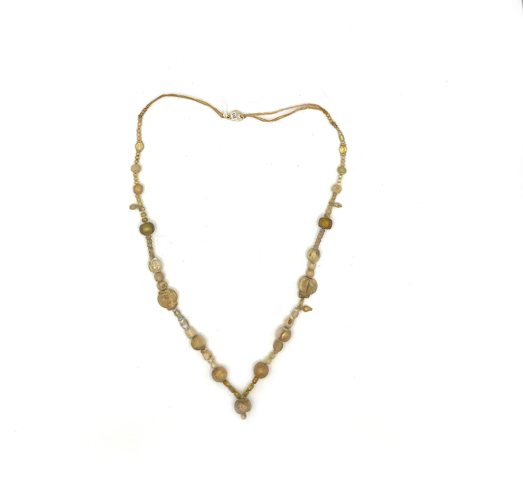 in vetro dorato secc. XVI-XVII con vaghi sferici, lenticolari e tubolari, lung cm 52,
