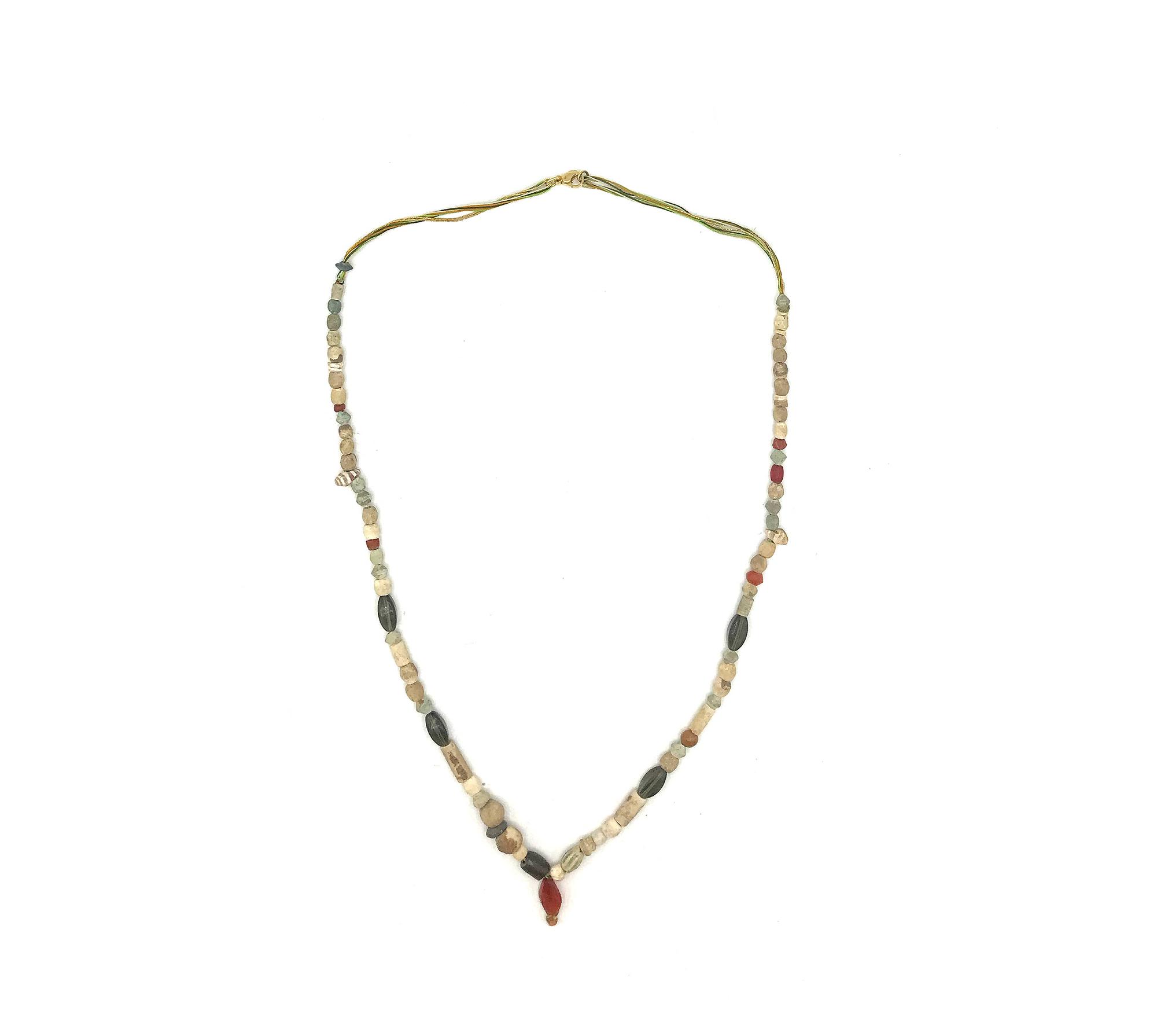 Lotto 125 | COLLANA in calcare bianco, corniola, vetro e conchiglie, con vaghi...
