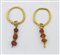 Coppia di orecchini in spesso filo d'oro che formano un anello dal quale pende un filo d'oro con tre perle in corniola. (2)