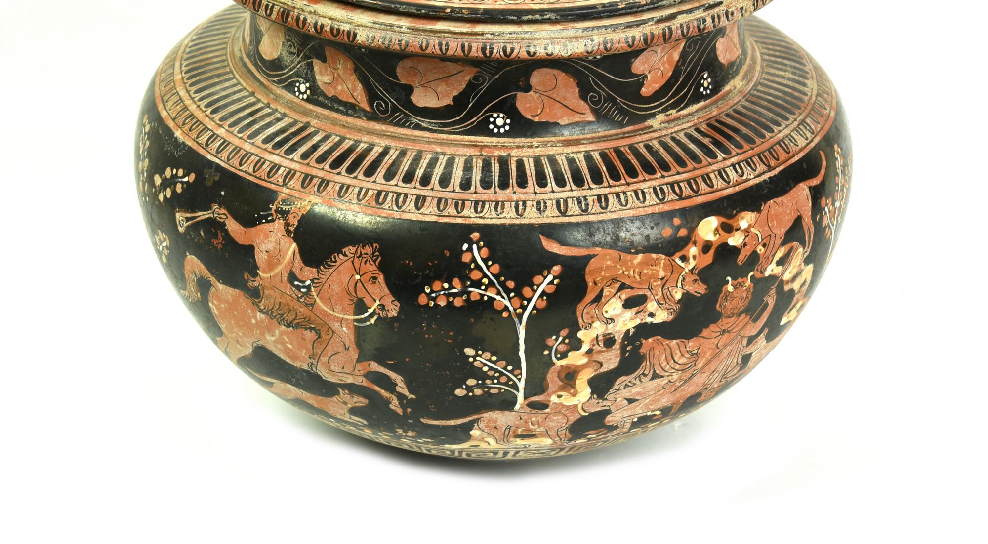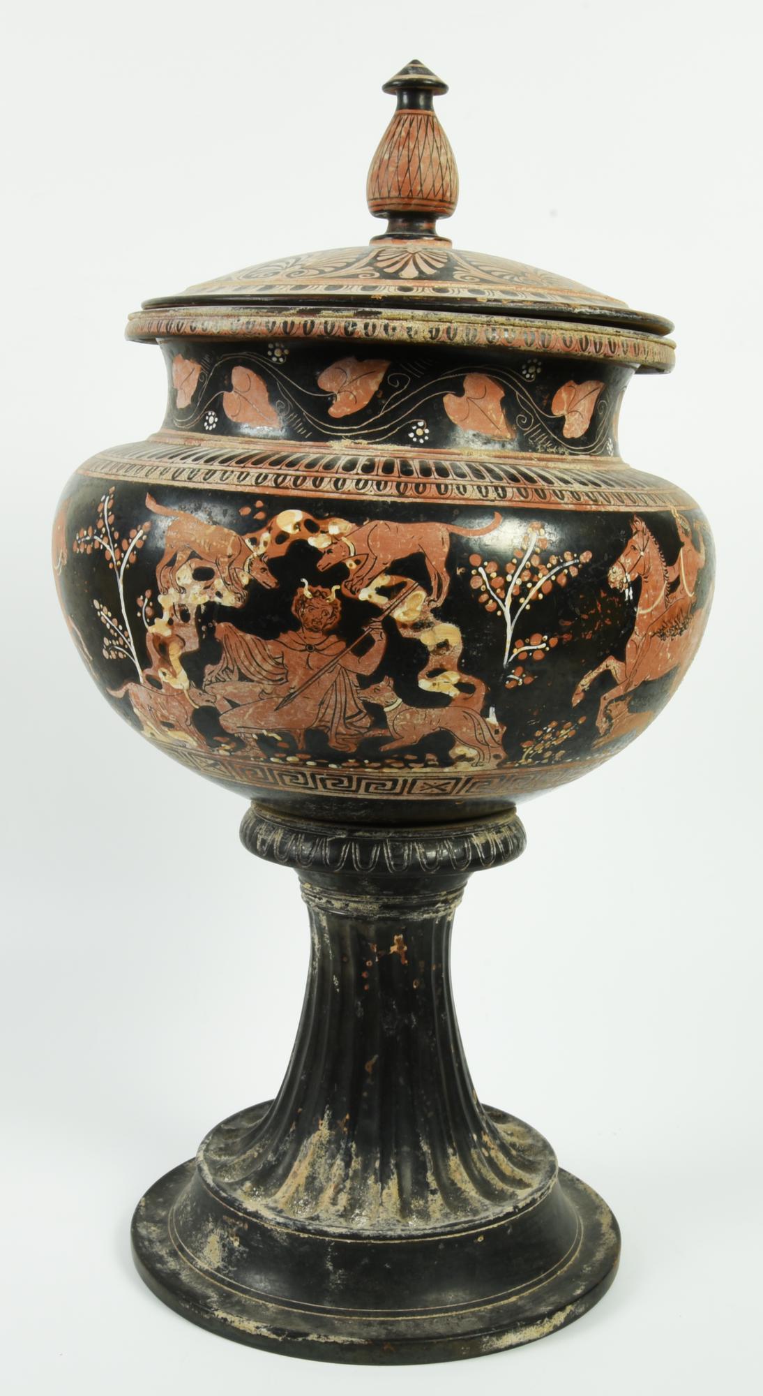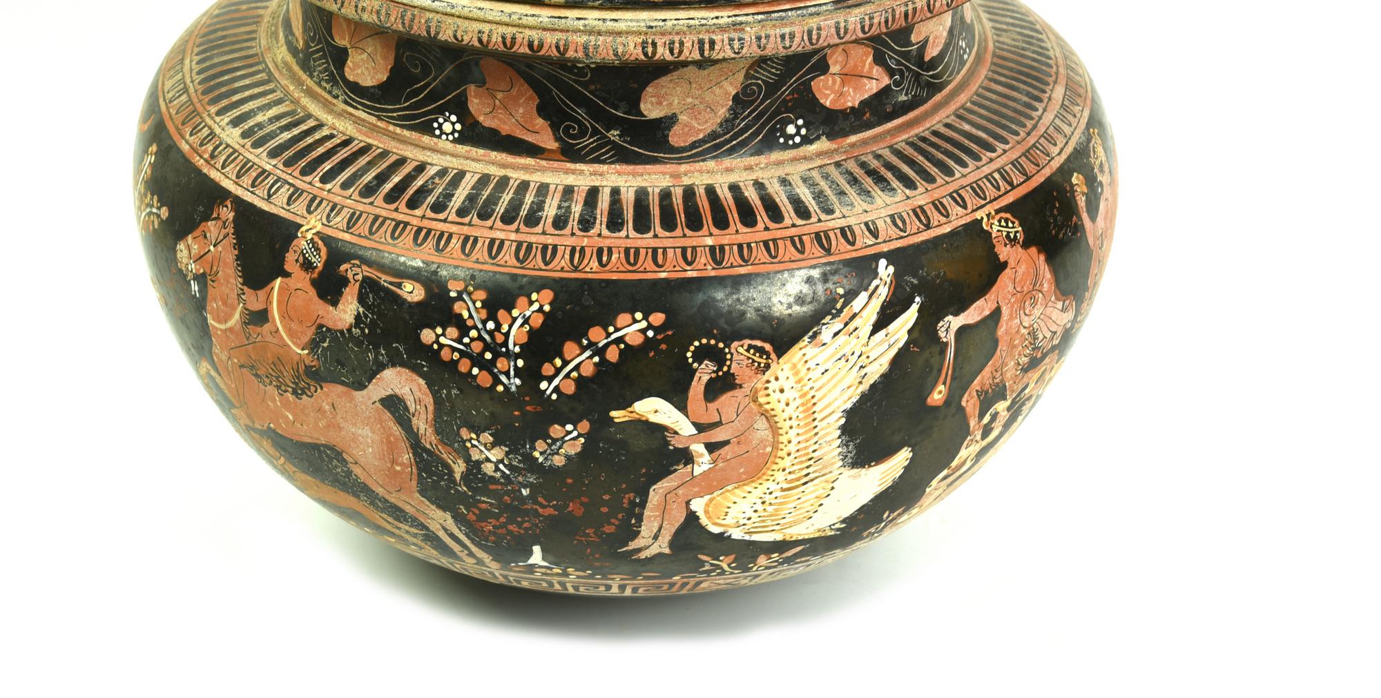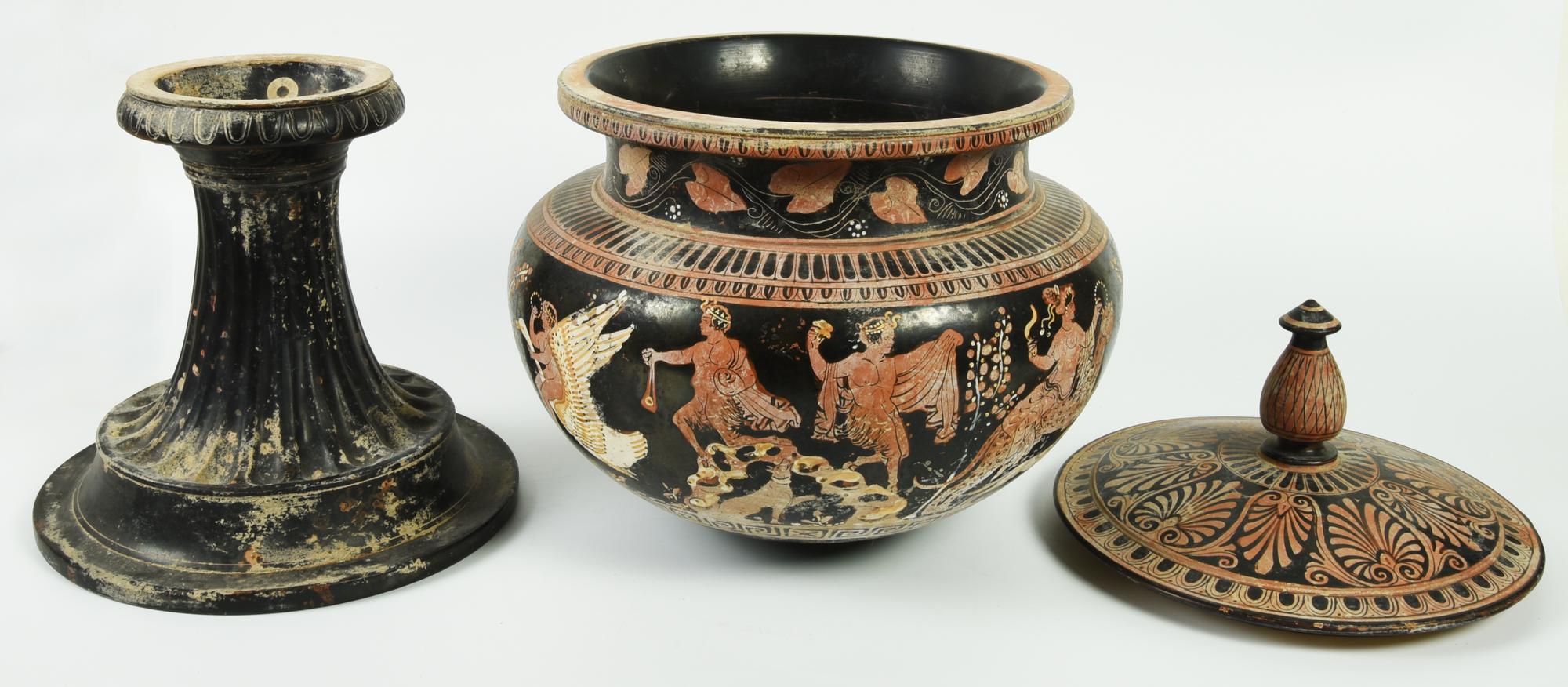 Dinos con sostegno costituito da tre elementi: coperchio, dinos e sostegno.