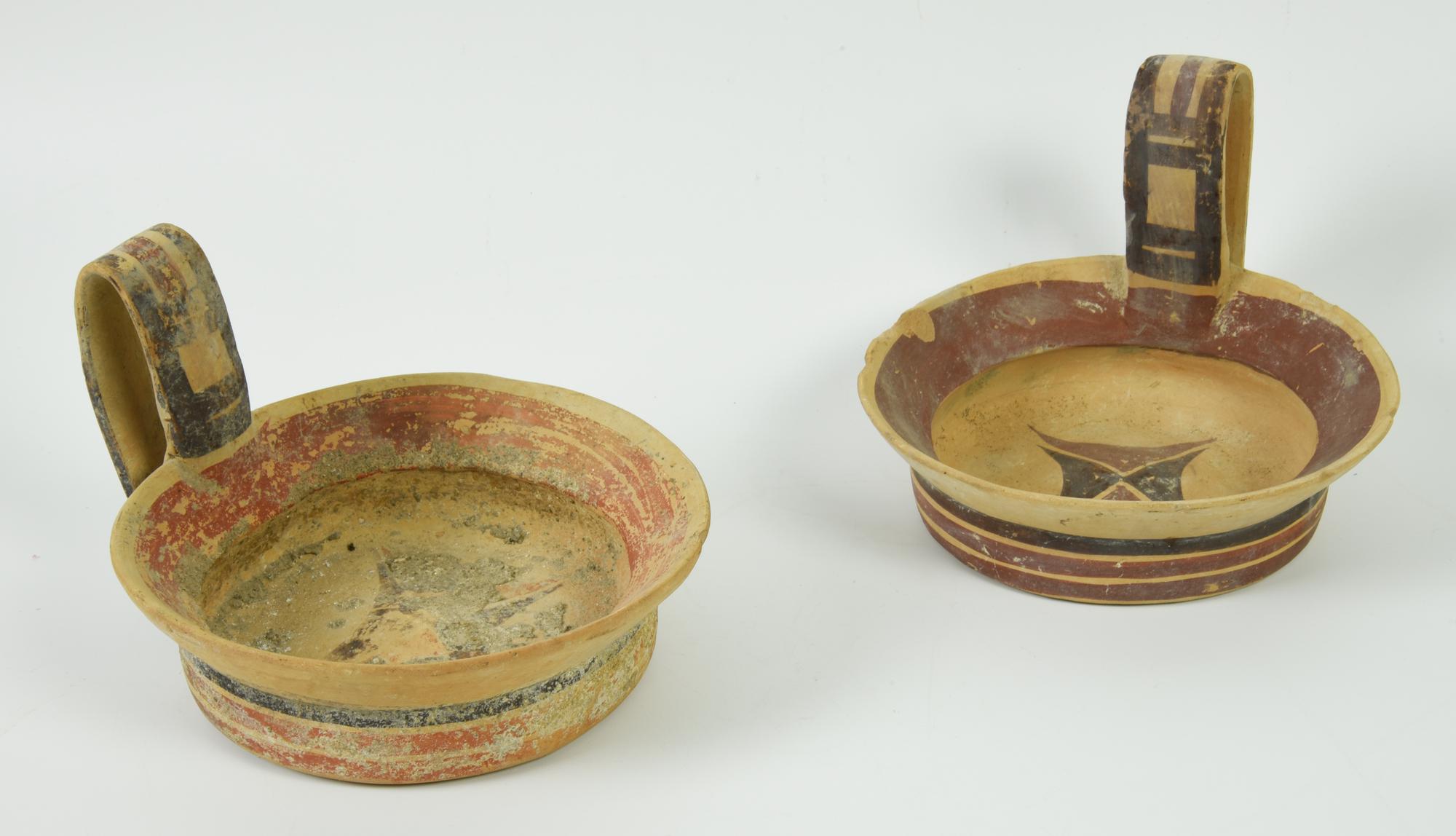 MATERIA E TECNICA: argilla depurata rosata, ingubbiatura camoscio vernice bruna e paonazza; modellati a tornio lento,
