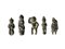 Quattro statuette raffiguranti Budda in vari atteggiamenti, di cui tre con appiccagnolo sulla testa per essere utilizzate come ciondolo ed una raffigurante un uomo nudo col braccio destro sollevato (5)